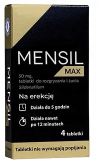 Менсил Макс – это безрецептурный препарат, содержащий двойную дозу силденафила. Он может начать действовать уже через 12 минут и помогает достичь эрекции до 5 часов после приема.