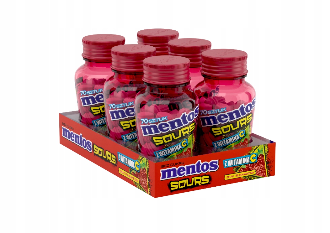 Mentos SOURS полуничні кислі цукерки 6х49г у подарунок