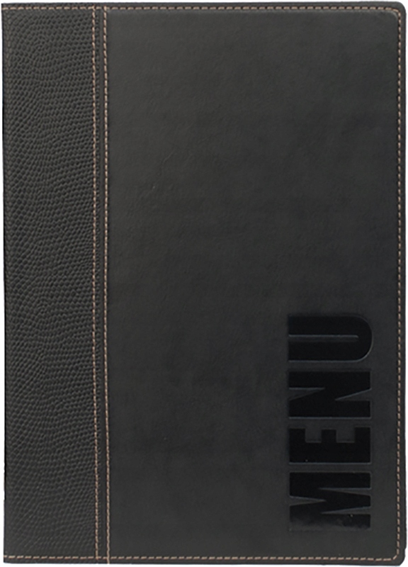 Карты меню из серии трендов имеют современный дизайн с подражанием кожи. Закрепление позволяет дополнять или менять вставки, каждая из которых содержит 4 страницы предложения. Столовые комнаты -это два, с темным краем сзади, тисненные надписи темные, вертикально ориентированы. Модные меню открыты в черном, бордовом, зеленых, светло -коричневых и синих. Внутренние страницы имеют шаблон текстуры. Тенденции могут быть размещены для меню, прозрачные, прозрачные, в упаковке из 10 штук