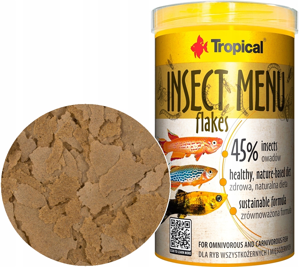 Меню насекомых Flakes - это кусок пищи для всеядной и плотоядной рыбы. Пища была основана на трех типах насекомых: шелкорный червя (15%), Hermetia (15%) и Mądnik Młynarek (15%). Содержание белка насекомых ускоряет рост и влияет на правильное развитие. Присутствие омега-3 и омега-6 жирных кислот добавляет жизнеспособность и энергию, в то время как содержание хитина активирует иммунную систему, поддерживает бактериальную флору и регулирует пищеварение. Еда не содержит консервантов и красителей. p>