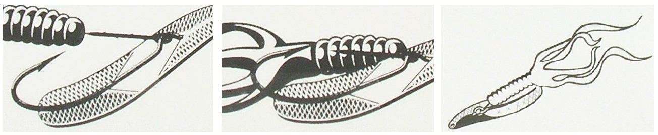 Она имеет интересное само по себе действие и в зависимости от скорости проводки раскачивается вбок и мерцает, хотя обычно он остается в положении крючка вверх.