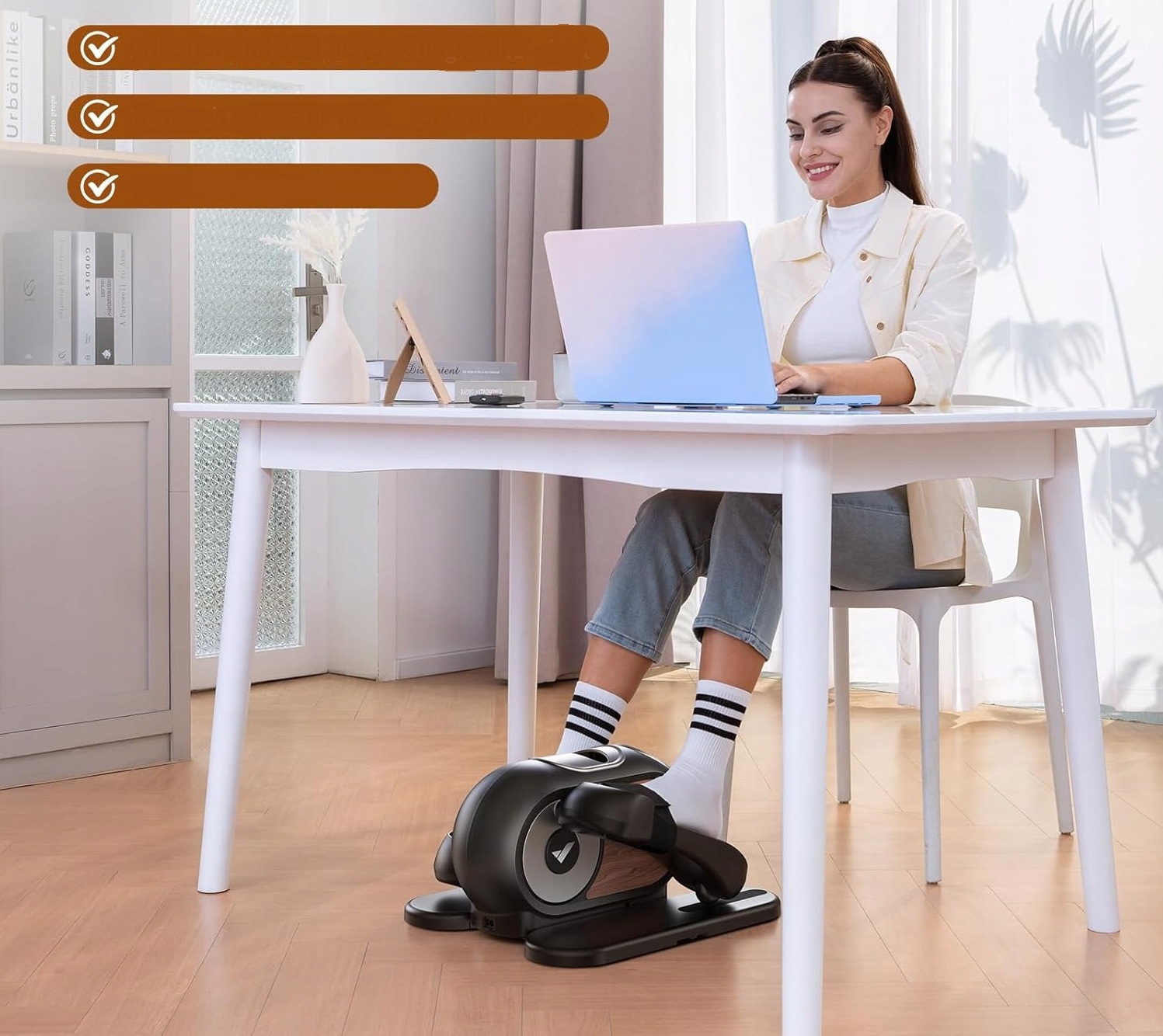 - [Упражнения с эспандерами]: этот тренажер под столом предлагает, в дополнение к отдельным эллиптическим упражнениям, эспандеры для верхней части тела, с помощью которых вы можете можно тренировать плечи, руки и грудь. Забудьте об однообразии эллиптических упражнений и займитесь комфортной тренировкой дома.