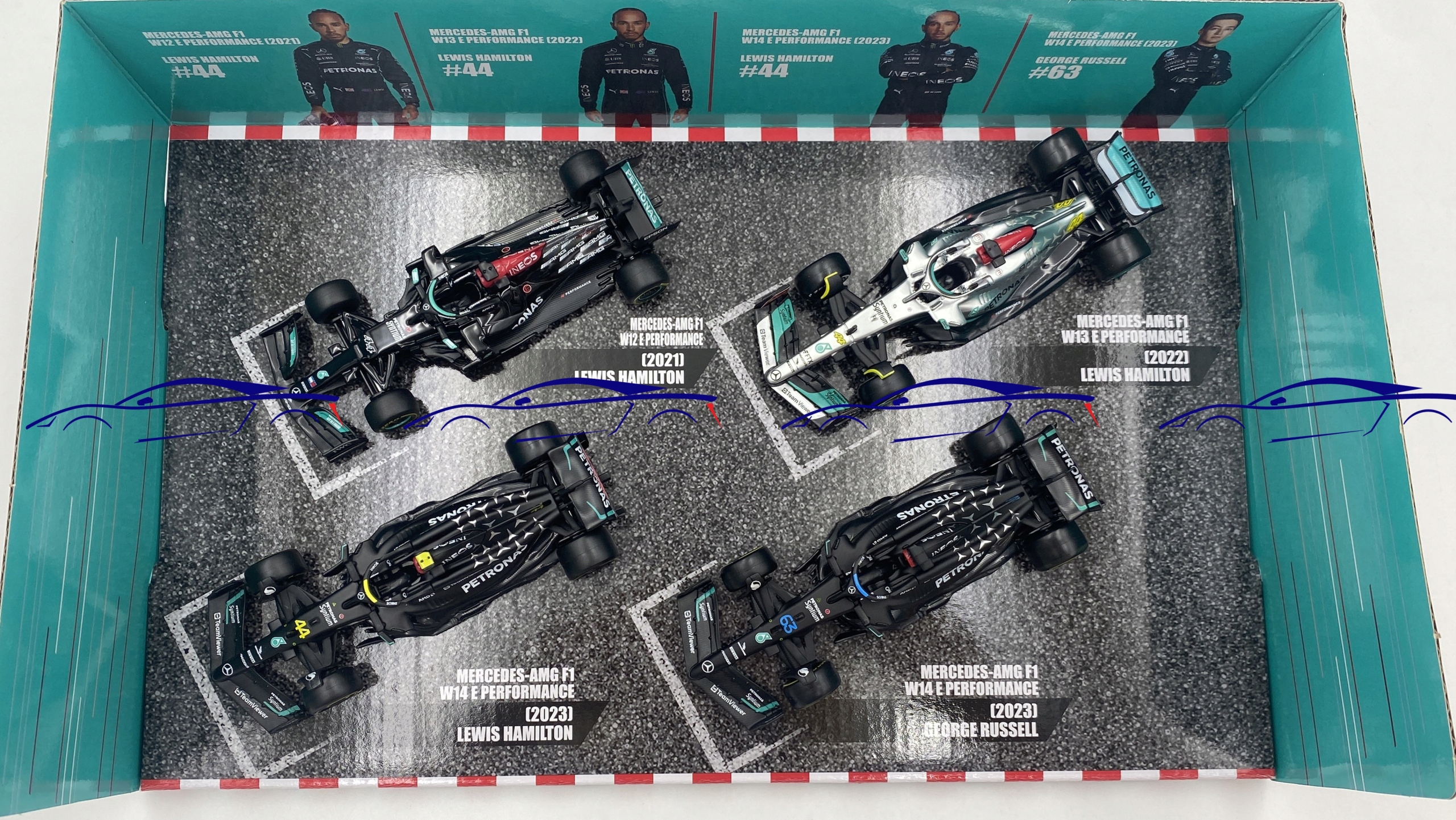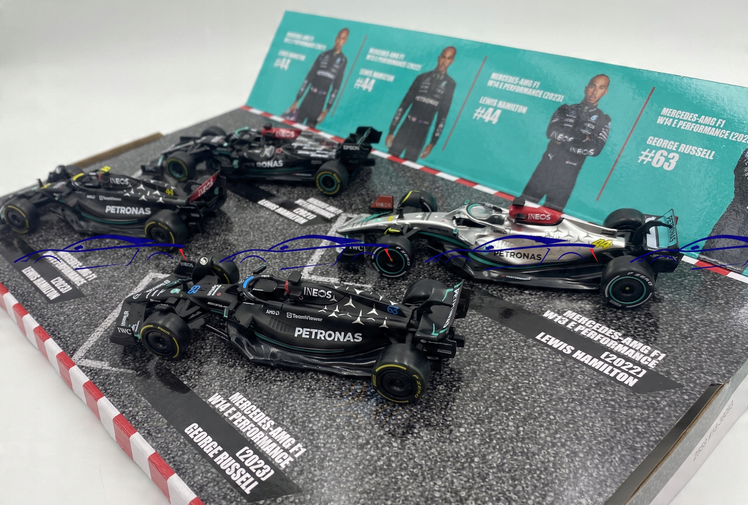 Mercedes AMG F1 Hamilton Russell W12 W13 W14 BBurago SET 1:43