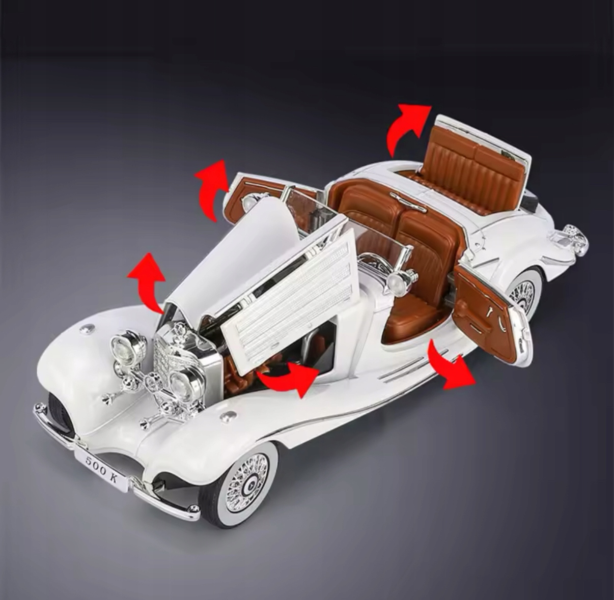 - Роскошный интерьер: Интерьер, отделанный материалами высочайшего качества, включая роскошную кожу, обеспечивает комфорт и стиль, которые сегодня столь же впечатляют, как и в 1930 -х годах. 500K предложил исключительную производительность и современные технологии, которые опередили их время.