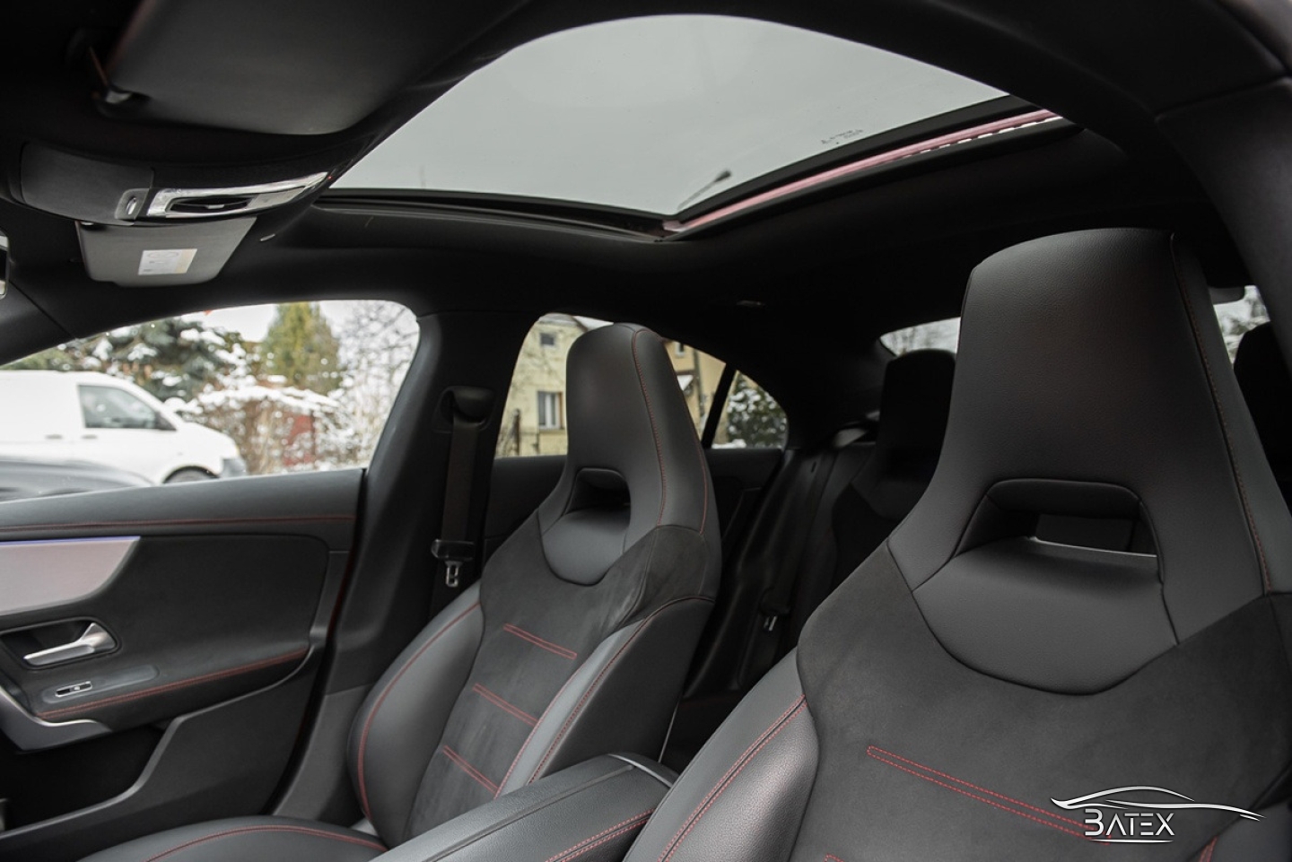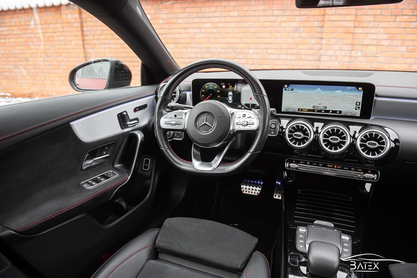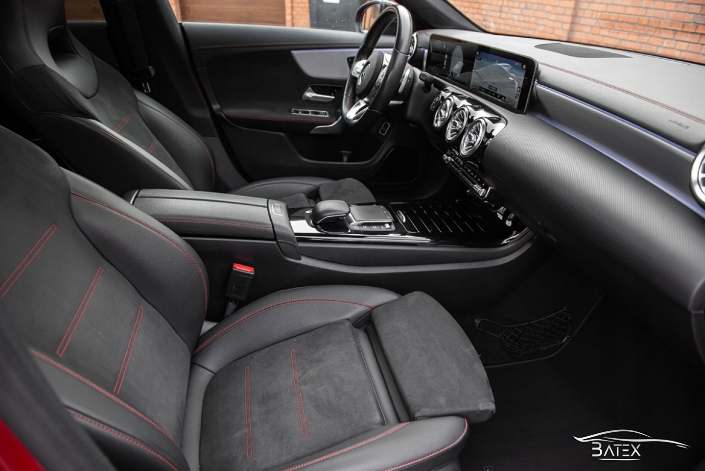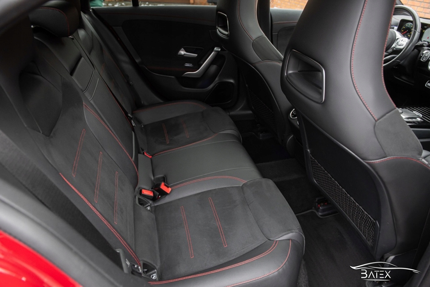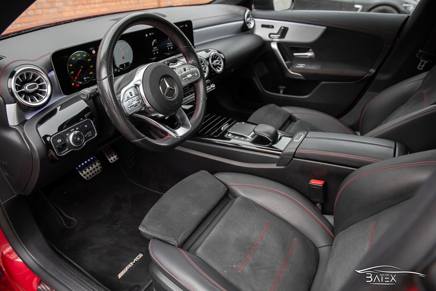 Внутри автомобиль выглядит очень хорошо, обивка сидений не имеет признаков износа, царапин или обесцвечивания. Спортивные профилированные сиденья с кожаными боковыми панелями, сиденья из алькантары. Черный салон с черной обивкой потолка, красной строчкой и панорамной крышей, алюминиевым декором и амбиентной подсветкой в 64 цветах выглядит очень со вкусом и стильно.