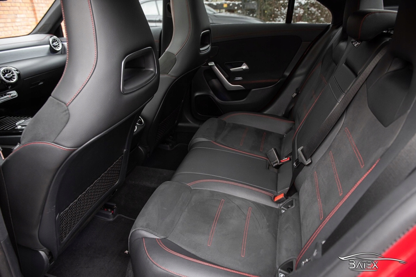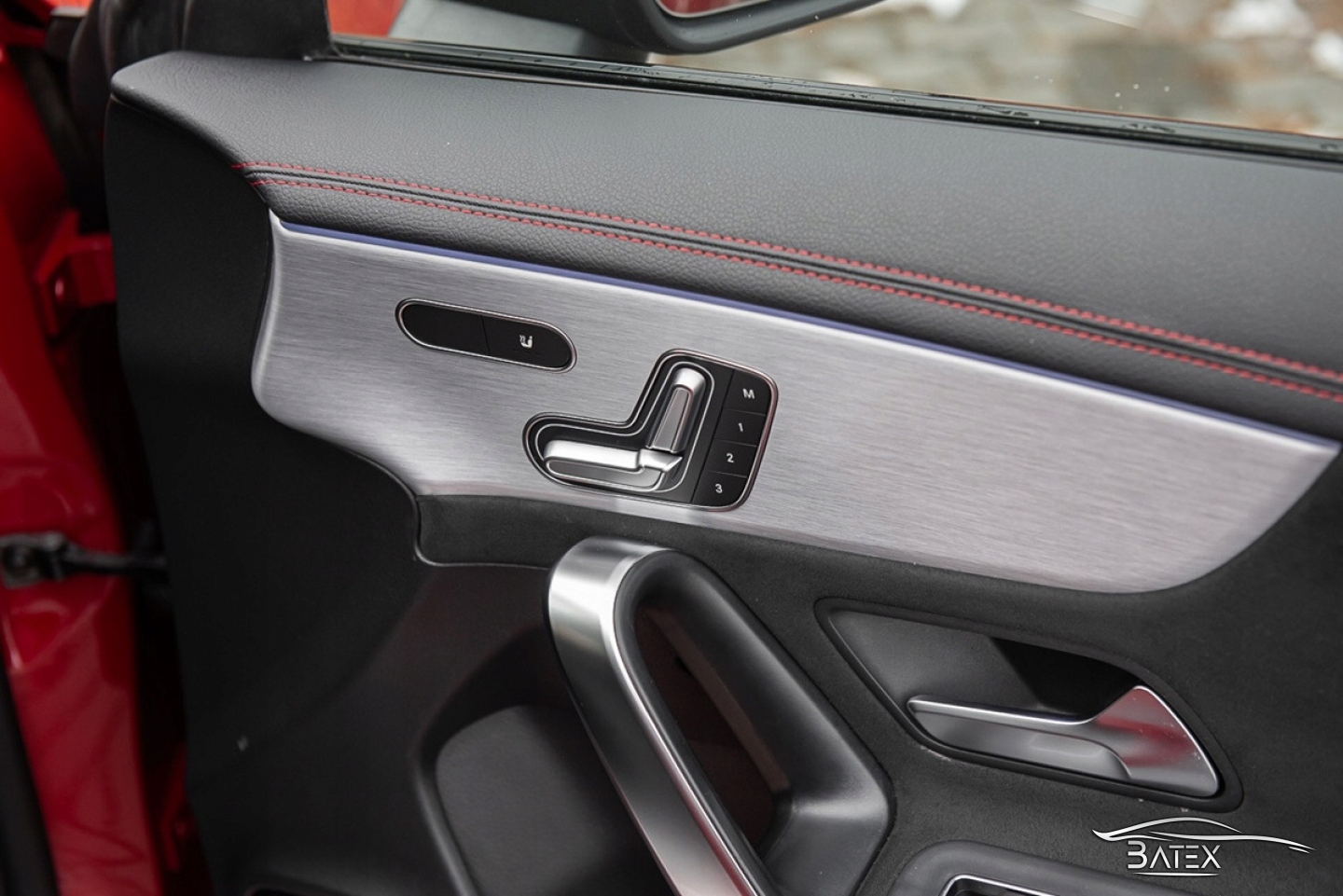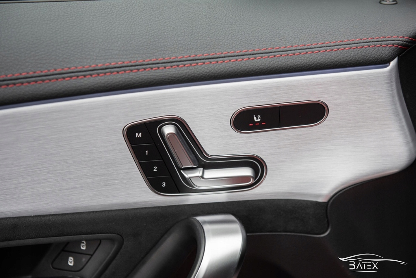 КОЖАНАЯ ОБИВКА С АЛЬКАНТАРОЙ И КРАСНОЙ НИТЬЮ, ПРОФИЛИРОВАННЫЕ И ТИСНЕВЫЕ СИДЕНЬЯ