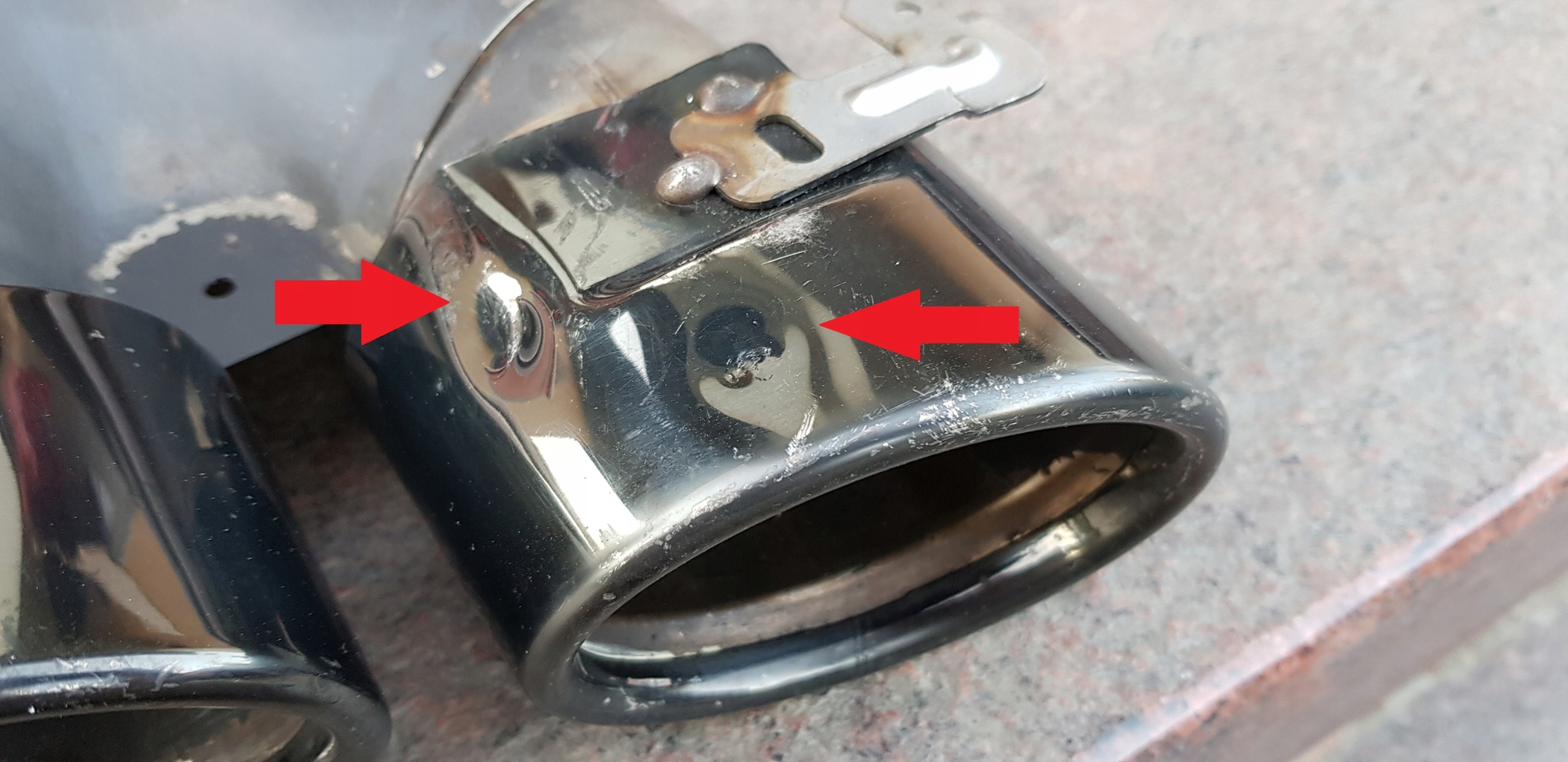 - Левые имеют 2 вмятины, отмеченные под стрелками, а сзади сильно смятывается, как вы можете видеть на фото