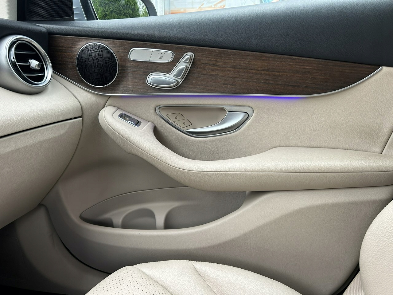 - кремовый кожаный салон, фурнитура из дерева