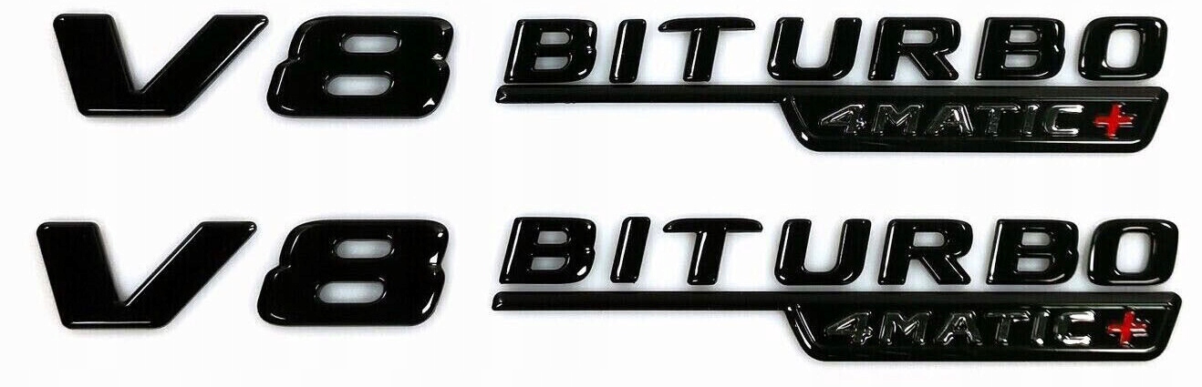Mercedes v8 Buturbo 4matic+ Emblem Stamp Надпись Black Gloss (пара)