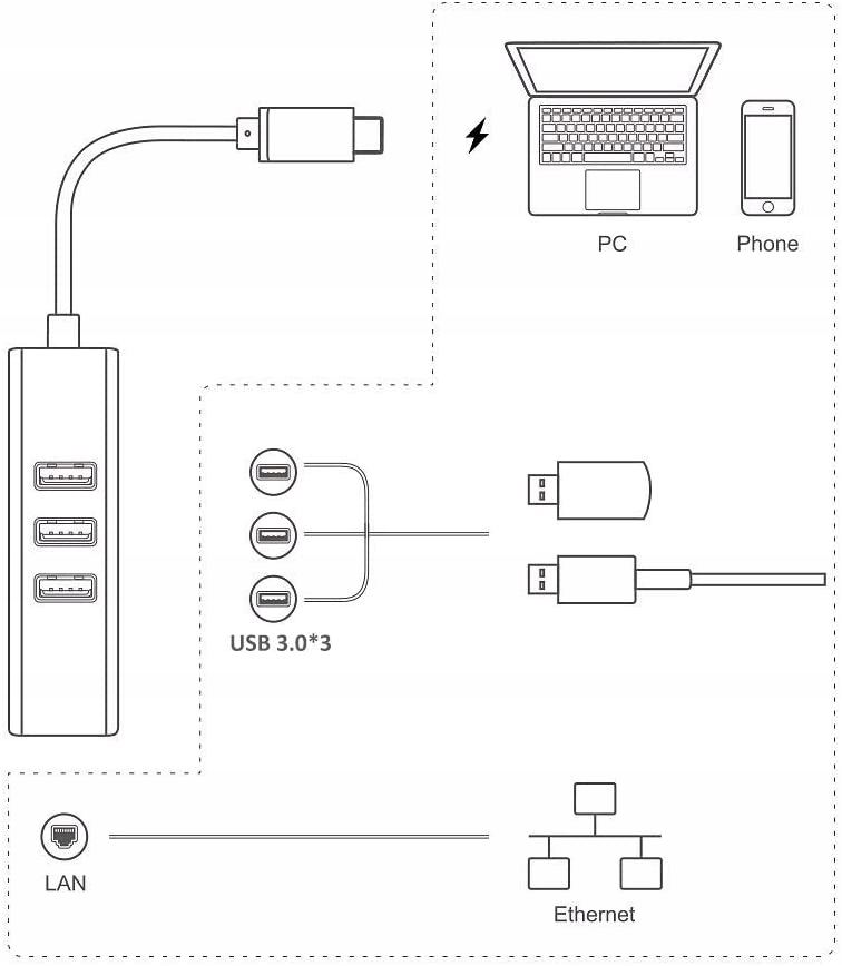 КОНЦЕНТР СЕТЕВОЙ КАРТЫ АДАПТЕР USB C 3.0 АДАПТЕР RJ45 GIGABIT ETHERNET LAN