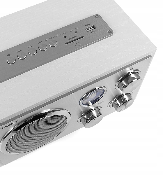 - Визуально радиоприемник впечатляет элегантным звуковым корпусом в сочетании с элегантной алюминиевой передней панелью.