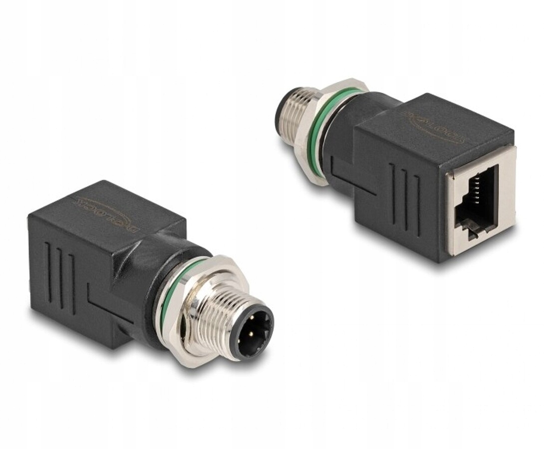 Сетевой адаптер M12, 4-контактный разъем D-кода, штекер, прямой разъем RJ-45, Delock 60061