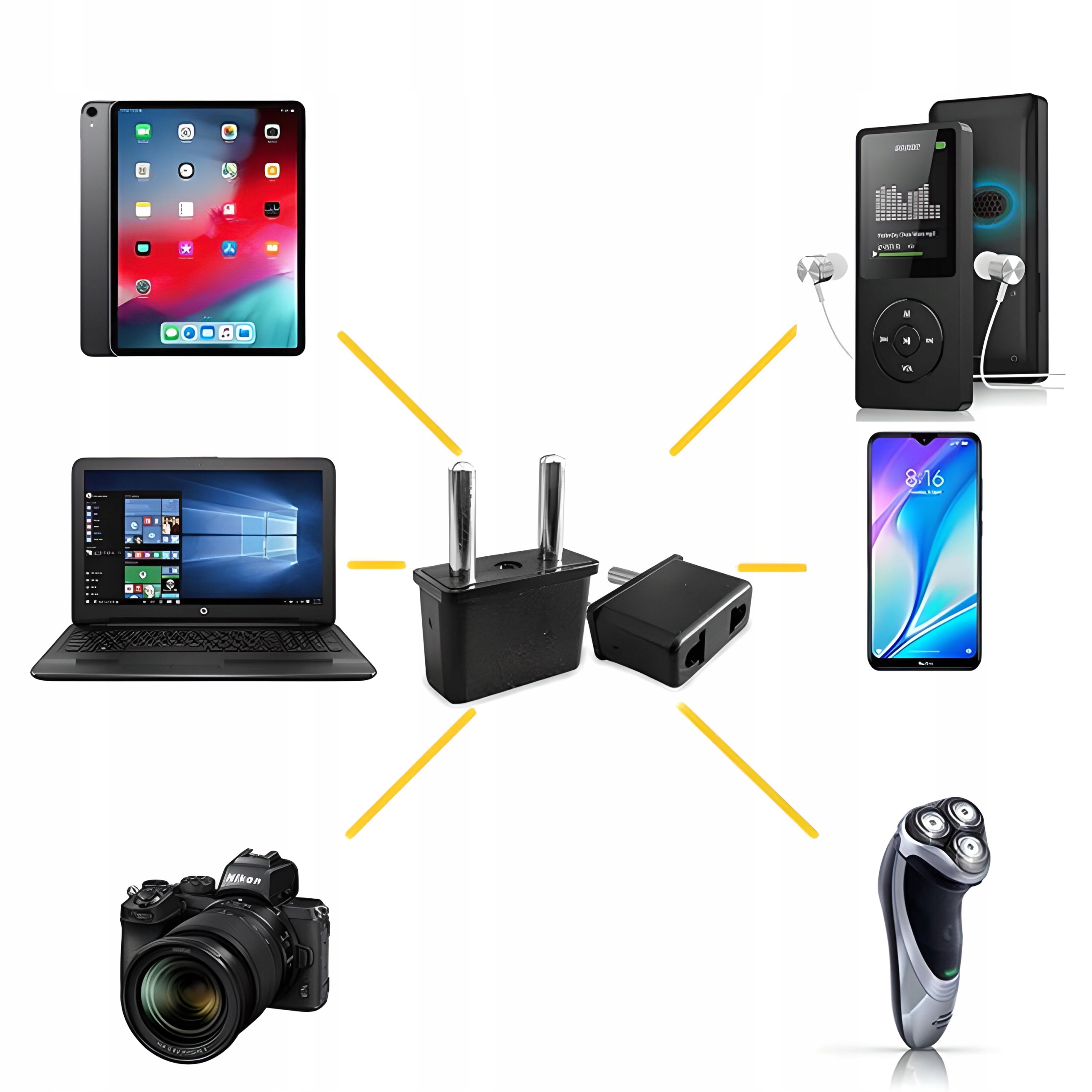 ✔️Высокая совместимость, поскольку адаптер позволит подключать множество типов устройств в Европе — в том числе зарядные устройства для телефонов, ноутбуки, фотоаппараты, бритвы, фены и многое другое