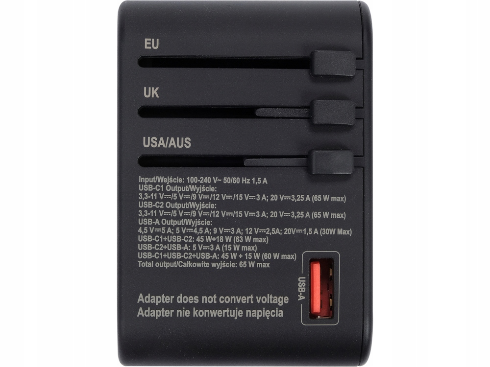 ПУТЕШЕСТВЕННЫЙ АДАПТЕР ДЛЯ БОЛЕЕ 150 СТРАН USB-C PD 65 Вт