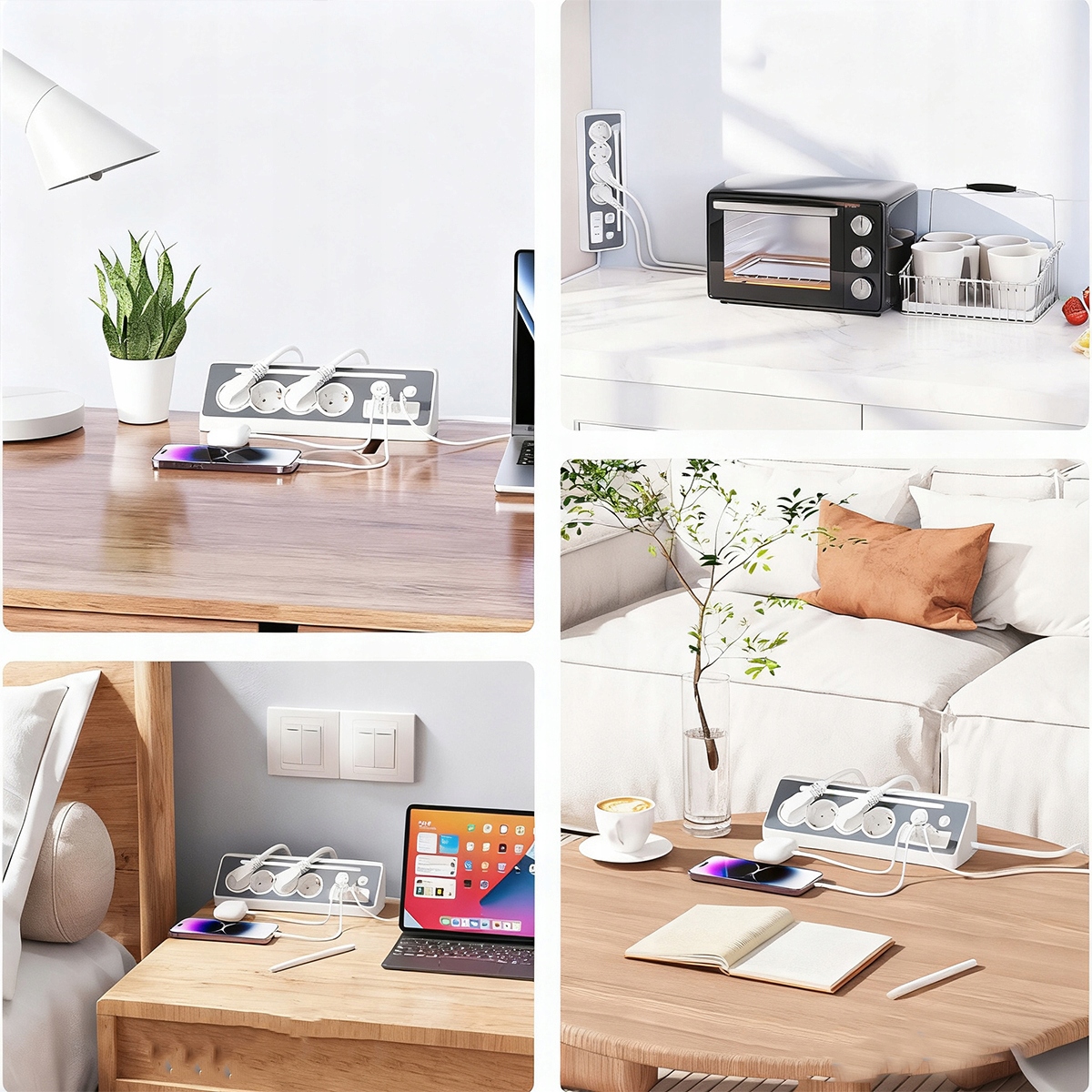 ➡️Треугольная форма угла 90 градусов. Благодаря треугольной форме 90 градусов этот удлинитель с портами USB особенно удобен для установки в углах стен, столов, диванов и т. д. Этот удлинитель особенно полезен на кухне и в офисе, где пространство часто ограничено. Его компактный дизайн позволяет легко интегрировать его в различные помещения, не занимая много места.