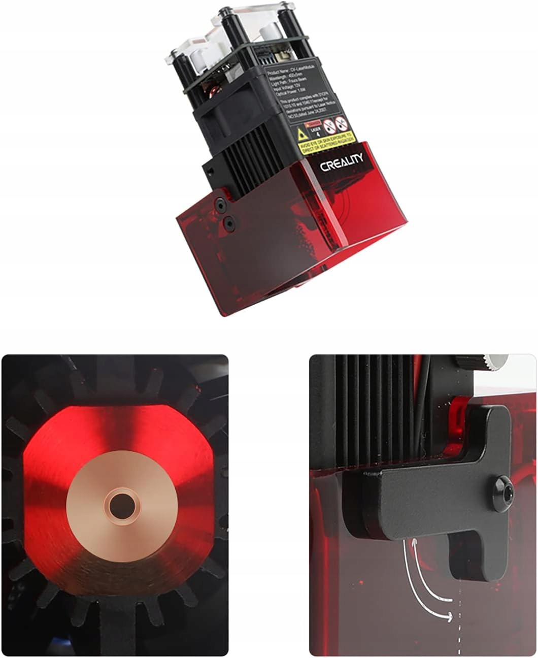 Оригинальная лазерная головка мощностью 1600 мВт, предназначенная для Ender-3 S1 и Ender-3 S1 Pro 3D принтеры. Продукт соответствует требованиям безопасности FDA класса 4 (не допускает повреждения глаз и кожи). Полупроводниковый лазер имеет стабильную мощность. Также он отличается длительным сроком службы – обеспечивает более 10 000 часов работы. Модуль имеет хлопковый фильтр, задача которого — улавливать пыль и неприятные запахи, образующиеся при гравировке. Рычаг, расположенный на корпусе, облегчает регулировку резкости точки.