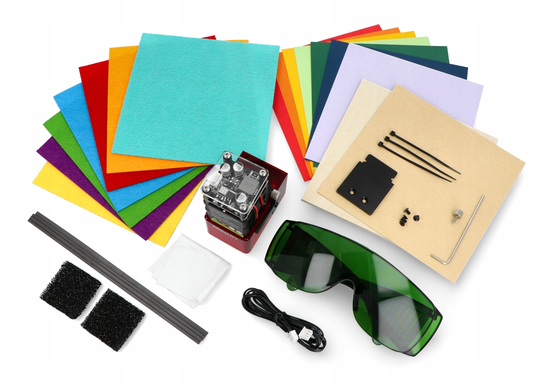 - Совместимые материалы: бумага, фанера, бамбуковые доски, кожа, ткань, акрил, пластик.