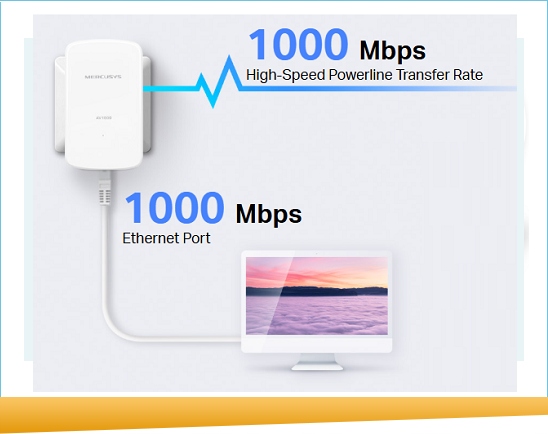 • Скорость передачи данных 1000 МБ/с - Быстрые и стабильные трансляции благодаря расширенной технологии HomePlug AV2