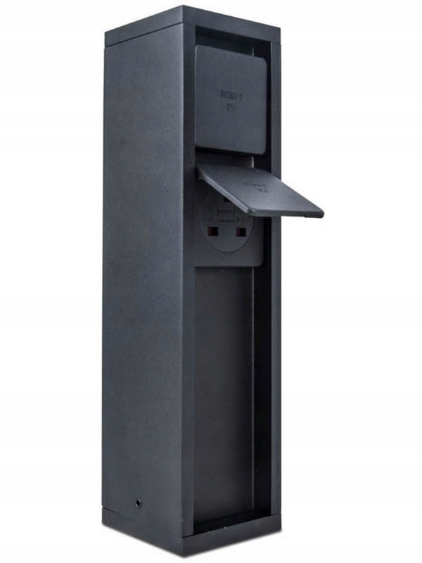 СЕТЕВОЙ столб IP54. Черный цвет. Для вилки типа Е – вилка «европейская» с двумя круглыми штырями и отверстием для заземляющего штыря, расположенным в розетке.