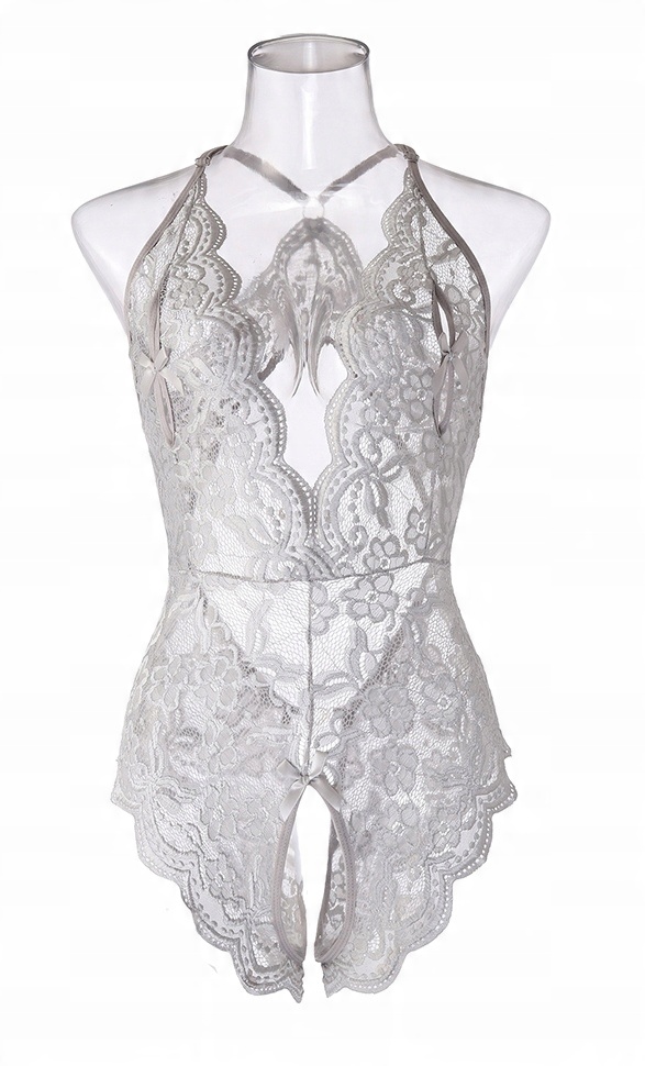 Кружевное нижнее белье, боди, сексуальное боди S, сексуальное белое с открытой промежностью PL