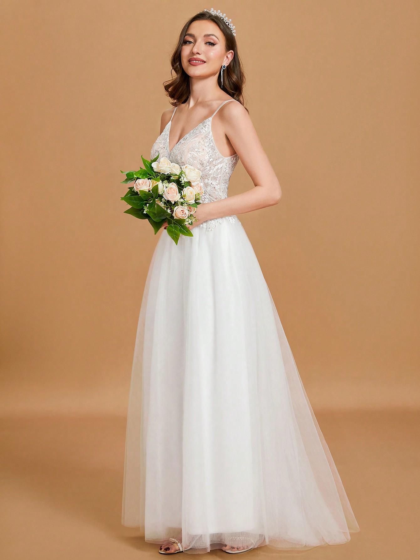SHEIN КРУЖЕВНОЕ СВАДЕБНОЕ ПЛАТЬЕ С ПАЙЕТКАМИ (43) 38 jav EC37303