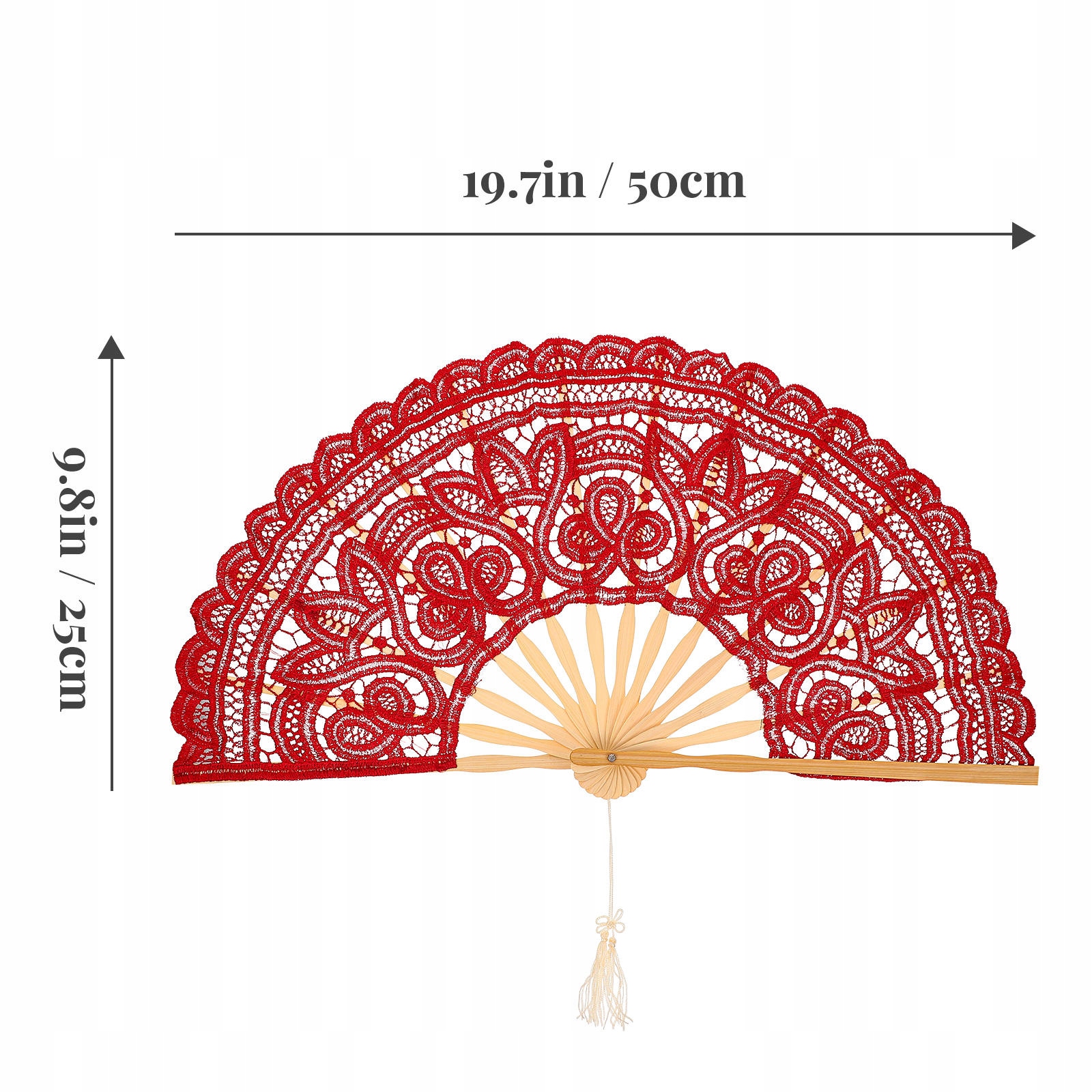 КРАСНЫЙ ВЕЕР С КРУЖЕВОМ И БАМБУКОМ ДЛЯ ТАНЦА И УКРАШЕНИЯ