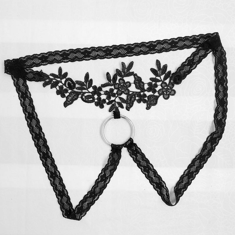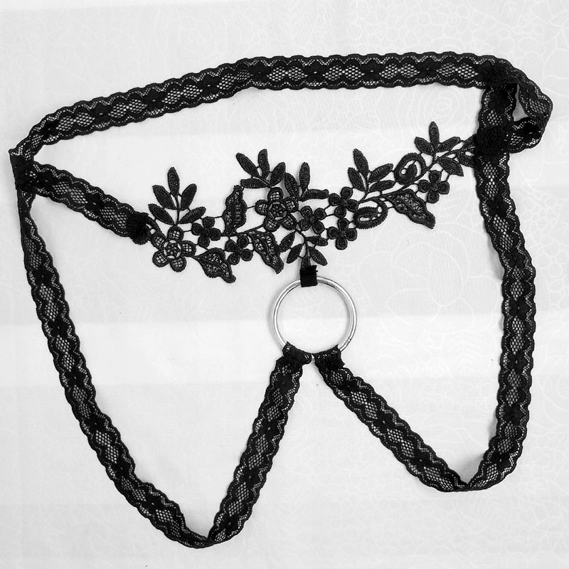 кружевные мужские эротические трусы с кольцом, черные