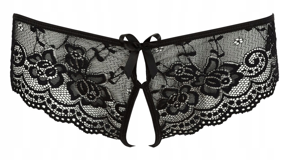 За соблазнительные наблюдения! Эти милые трусики представляют собой сочетание благородного цветочного кружева с вырезами, украшенными бантиками спереди и сзади