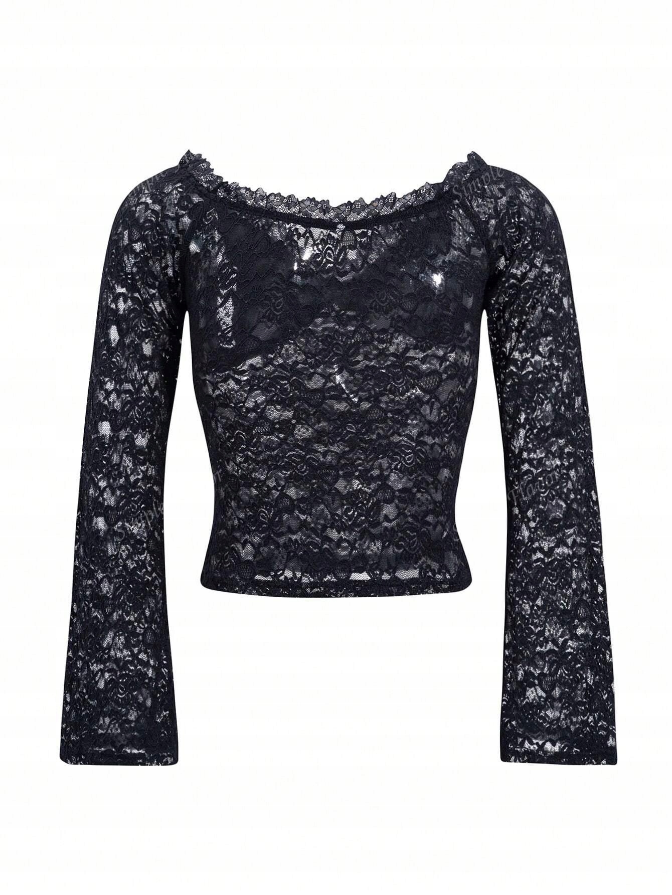 КРУЖЕВНОЙ ТОП S С ДЛИННЫМИ РУКАВАМИ
