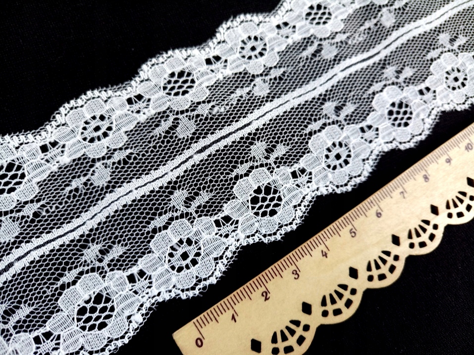 Кружево 60 мм, неэластичная кружевная лента белого цвета, 1 метр.