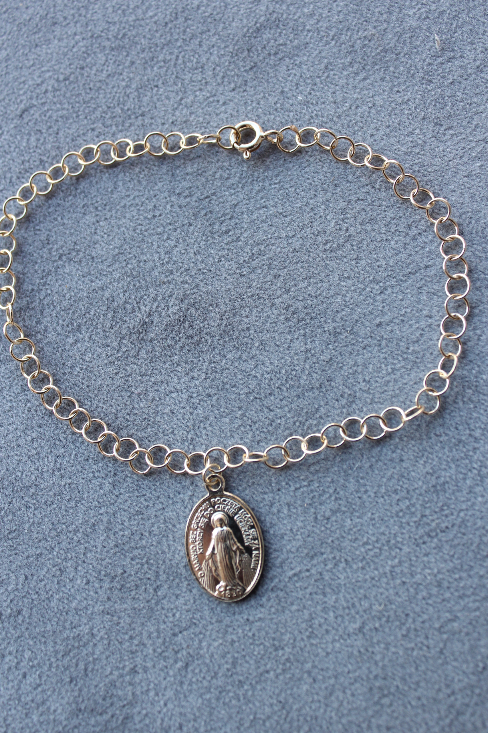 позолоченный браслет по доверии Мэри h2> ❤ Ручный член с замечательной медалью - цепь доверчивого серебра h2> - Длина браслета ок. 21 см (на расстегнутом) 4 мм