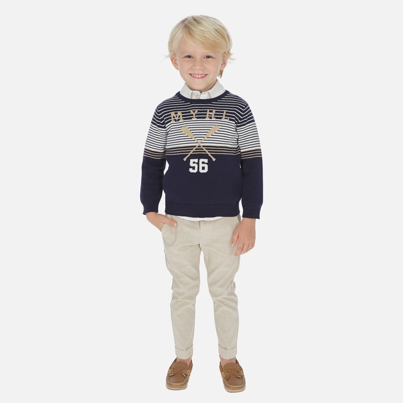 брюки Chino с простым разрезом для мальчика, идеально подходит для более элегантных случаев. Закрепление для одной кнопки. Регулируемая резиновая полоса для лучшей посадки. Светлый и модный материал с примесей льна. Внизу деталь в виде разрыва. Функциональные карманы как на передней, так и сзади штанов.