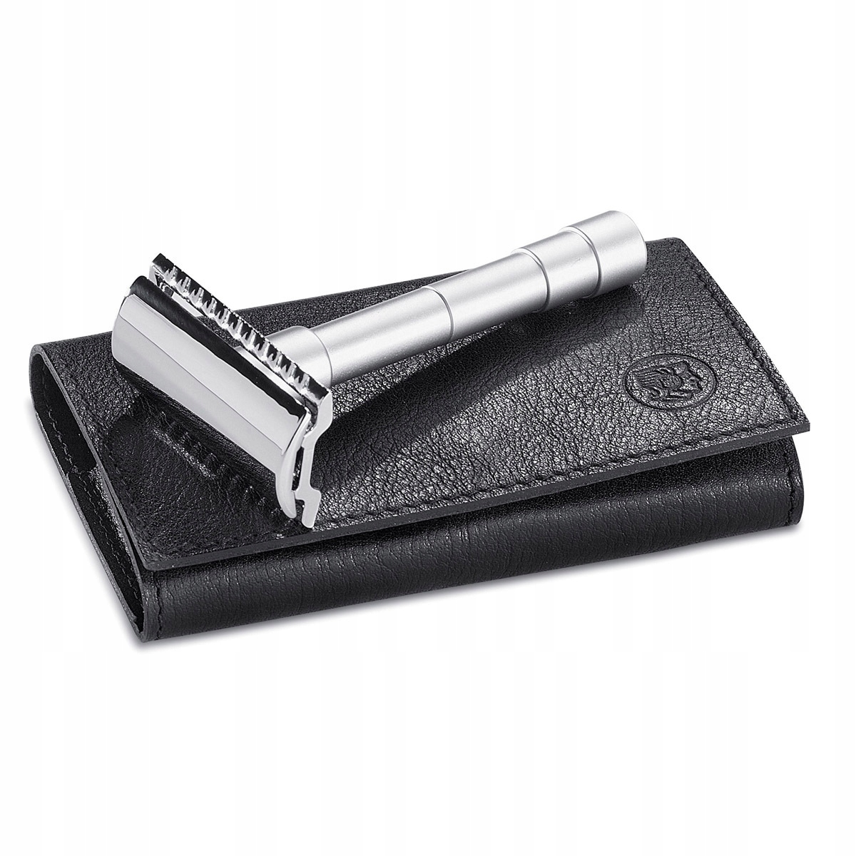 Merkur Solingen Travel Razor 9046002 Машина для бритья в кожаном корпусе - отличный выбор для путешественников. Это Т-образная тено-машина с 3 частями, которая облегчает хранение и транспортировку.