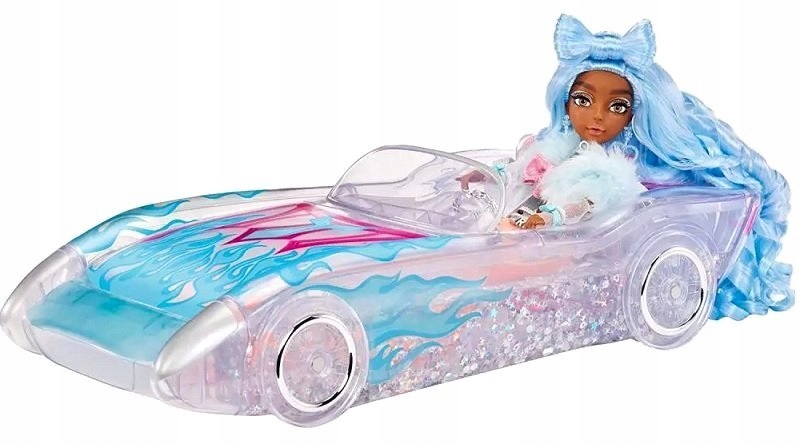 Погрузитесь в волшебный мир со стильным кабриолетом, в котором можно найти место для двух кукол из вашей коллекции. Автомобиль обладает уникальными функциями, такими как наклейки, меняющие цвет, и вы можете наполнить его водой и блестками для еще лучшего эффекта. Игрушка также служит станцией для смены цвета кукол. Снимите капот автомобиля и поместите на сиденья до двух кукол Mermaze Mermaidz. Обезопасьте своих кукол, пристегнув их ремнями безопасности. Налейте воду нужной температуры на хвост куклы и наблюдайте за волшебным превращением.
