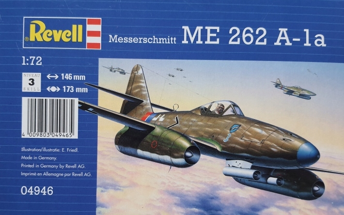 Me 262 A-1a - немецкий реактивный истребитель времен Второй мировой войны. A-1a означает перехватчик. Рекомендуемые цвета окраски: 32105, 32106, 32109, 32115, 32136, 32139, 32140. , 32145, 32147, 32149, 32155, 32156, 32157, 32165, 32169, 32191, 32199. Пластиковая модель для сборки Revell (REV-04166), без красок и клея.Размеры: упаковка 21х15х3см