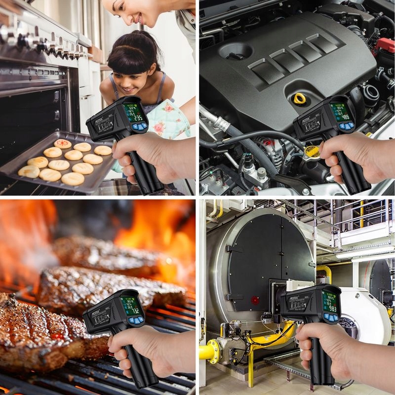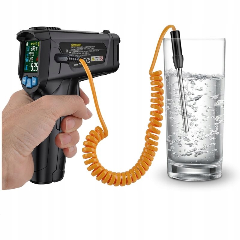 ** Не -контактный цифровой инфракрасный термометр с ЖК -дисплеем на Измерение температуры поверхности с помощью дополнительного зонда от -50 ° C до 800 ℃.