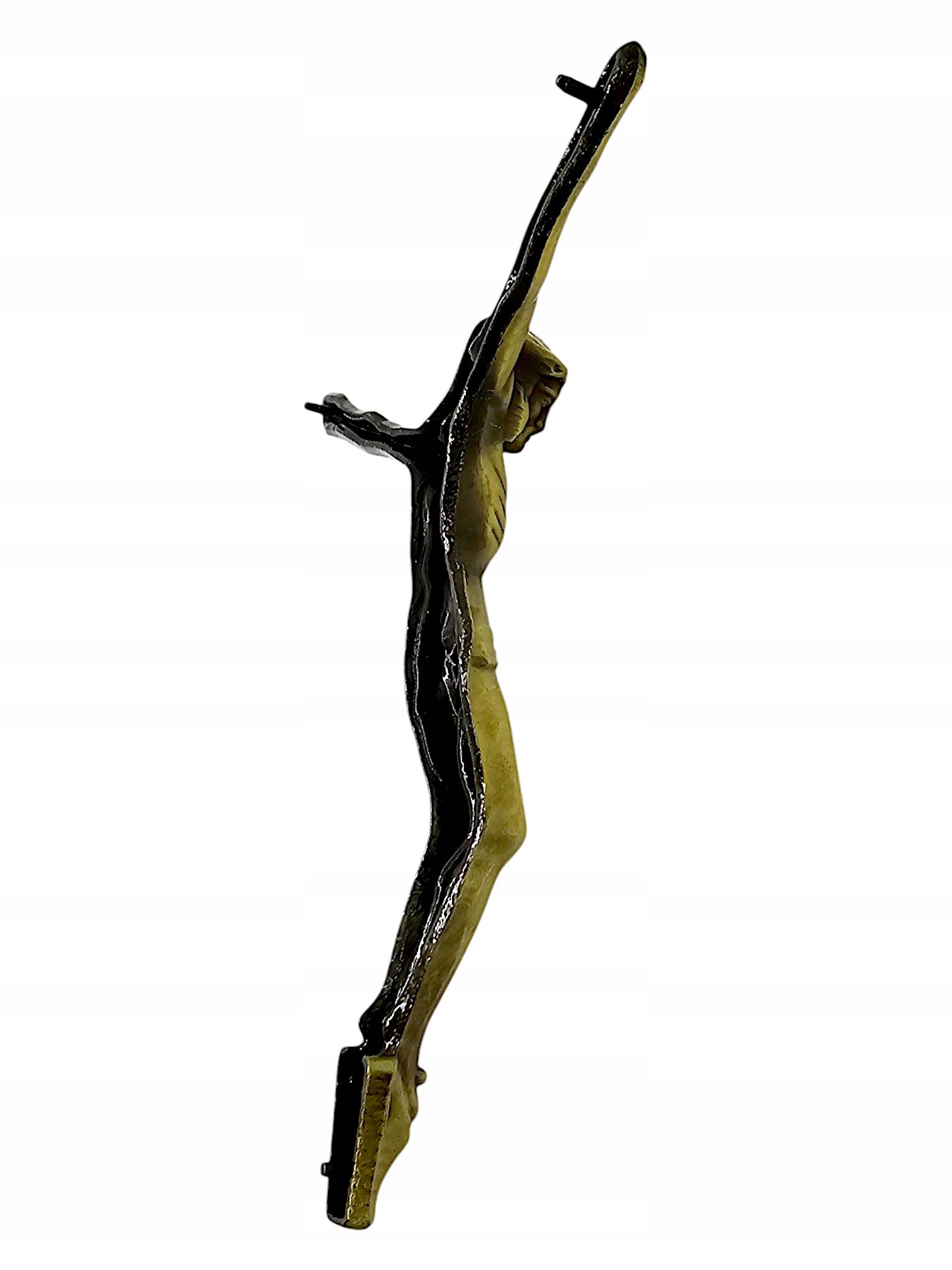 Эта прекрасно выполненная статуэтка цвета благородного золота восхищает вниманием к каждой детали, от черт лица до деталей одеяния. Реалистическое изображение распятого Христа излучает мир и достоинство. Проход имеет длину около 15 см и ширину 11 см, что делает его прекрасно видимым и является центральной точкой каждого креста. В комплект фигурки также входит доска с надписью INRI.