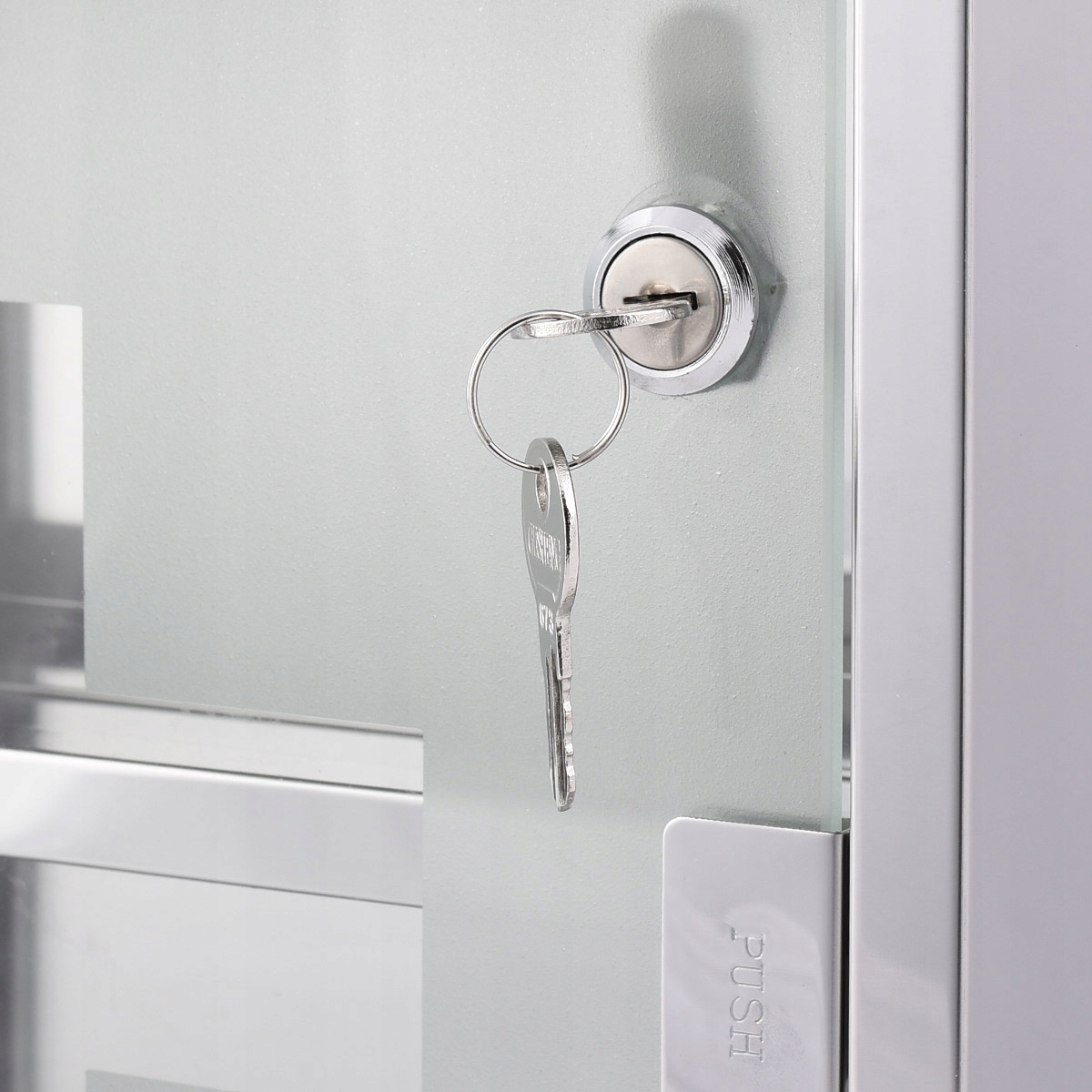 - Имеет дверца из матового стекла изнутри.