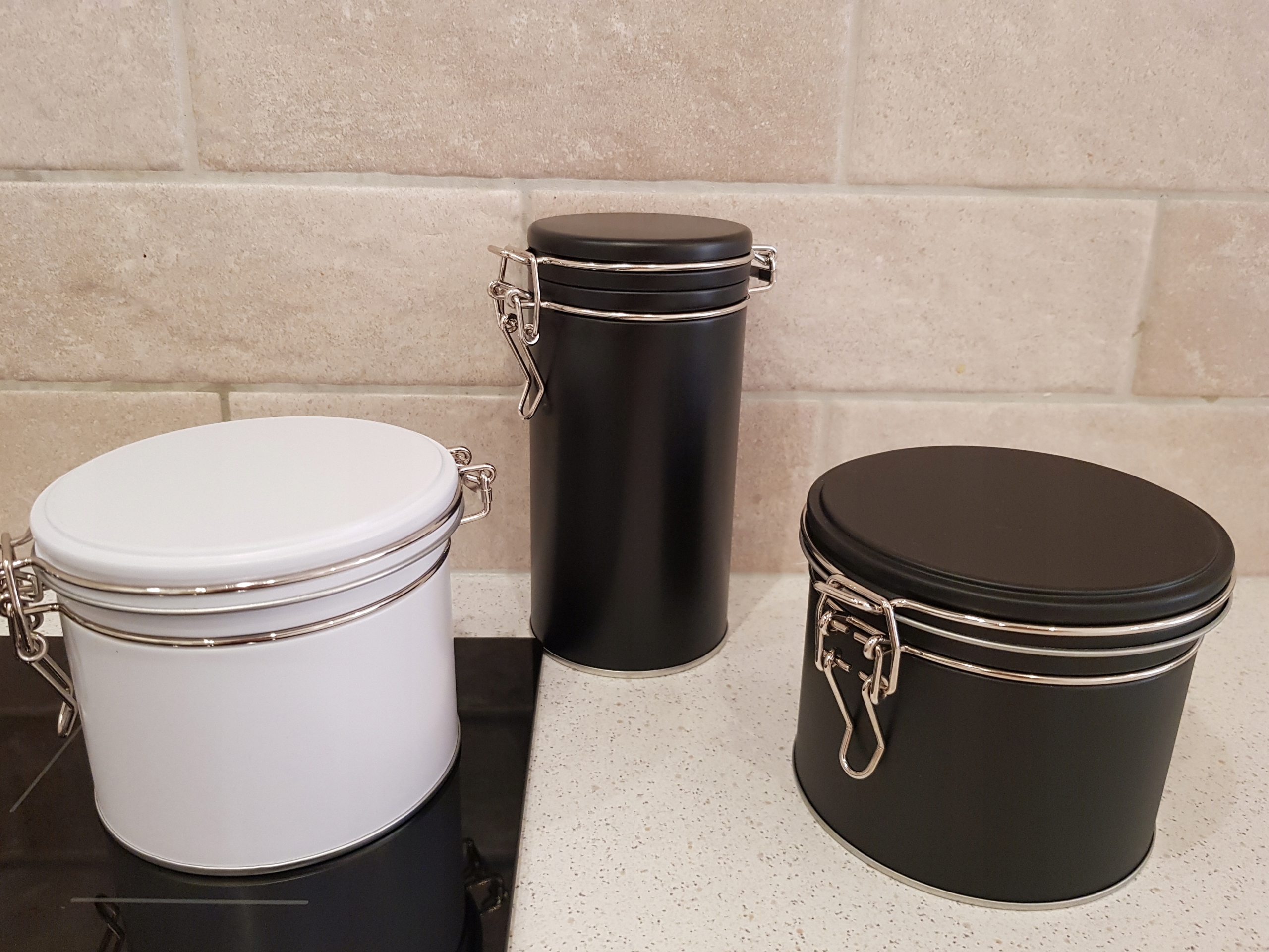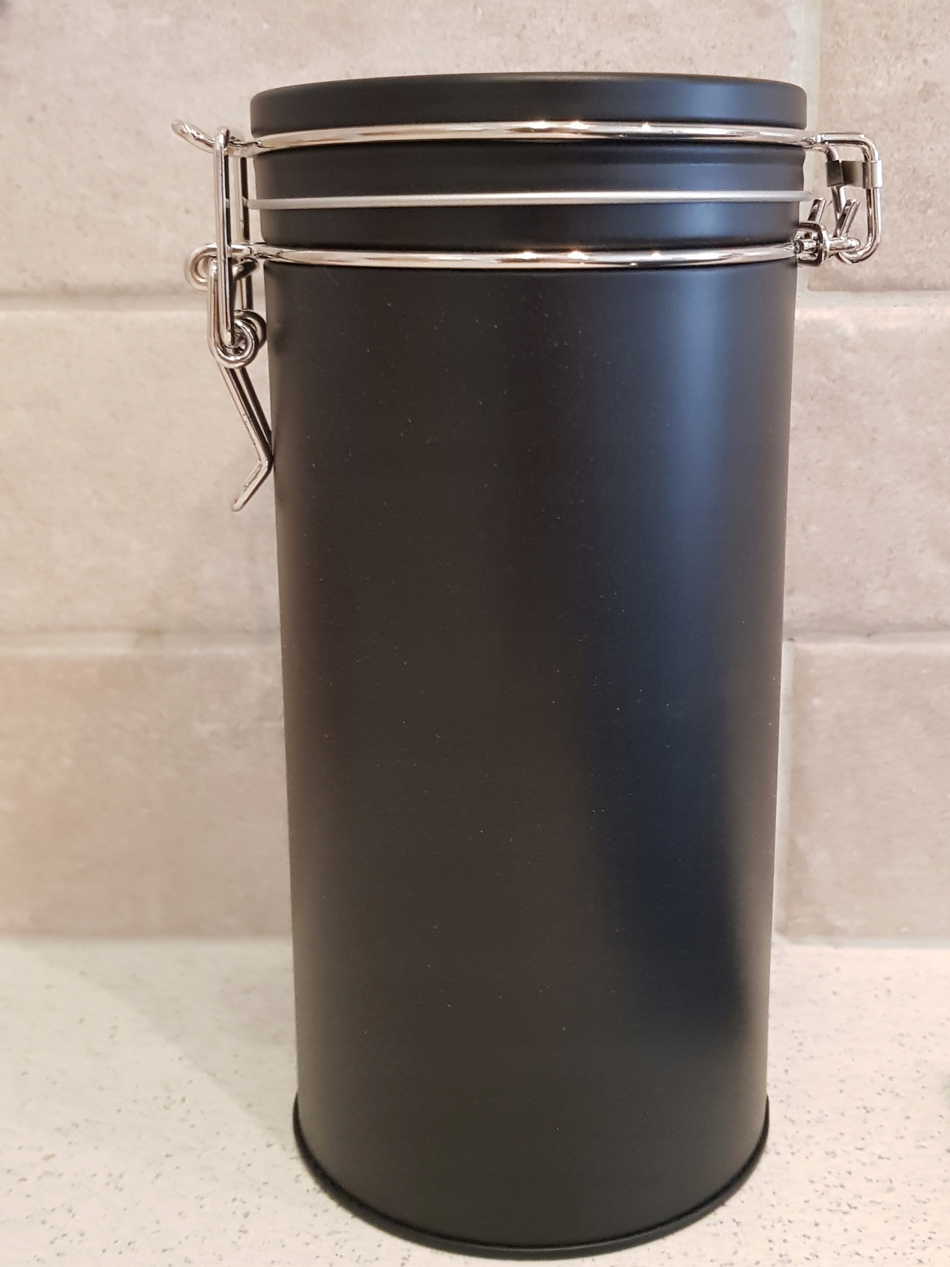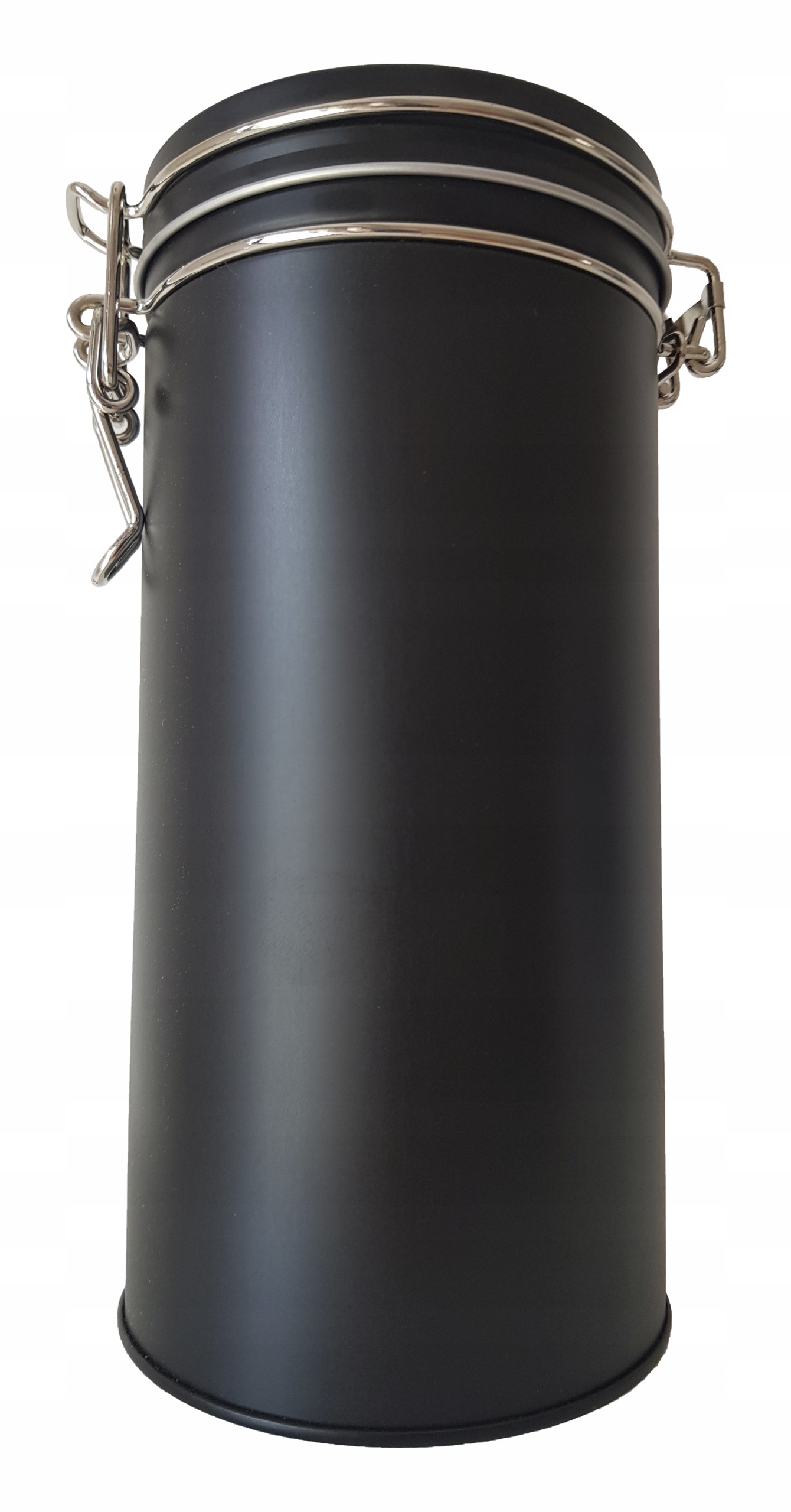 ЧЕРНАЯ МЕТАЛЛИЧЕСКАЯ БАНКА С ЗАЖИМОМ ДЛЯ КОФЕ