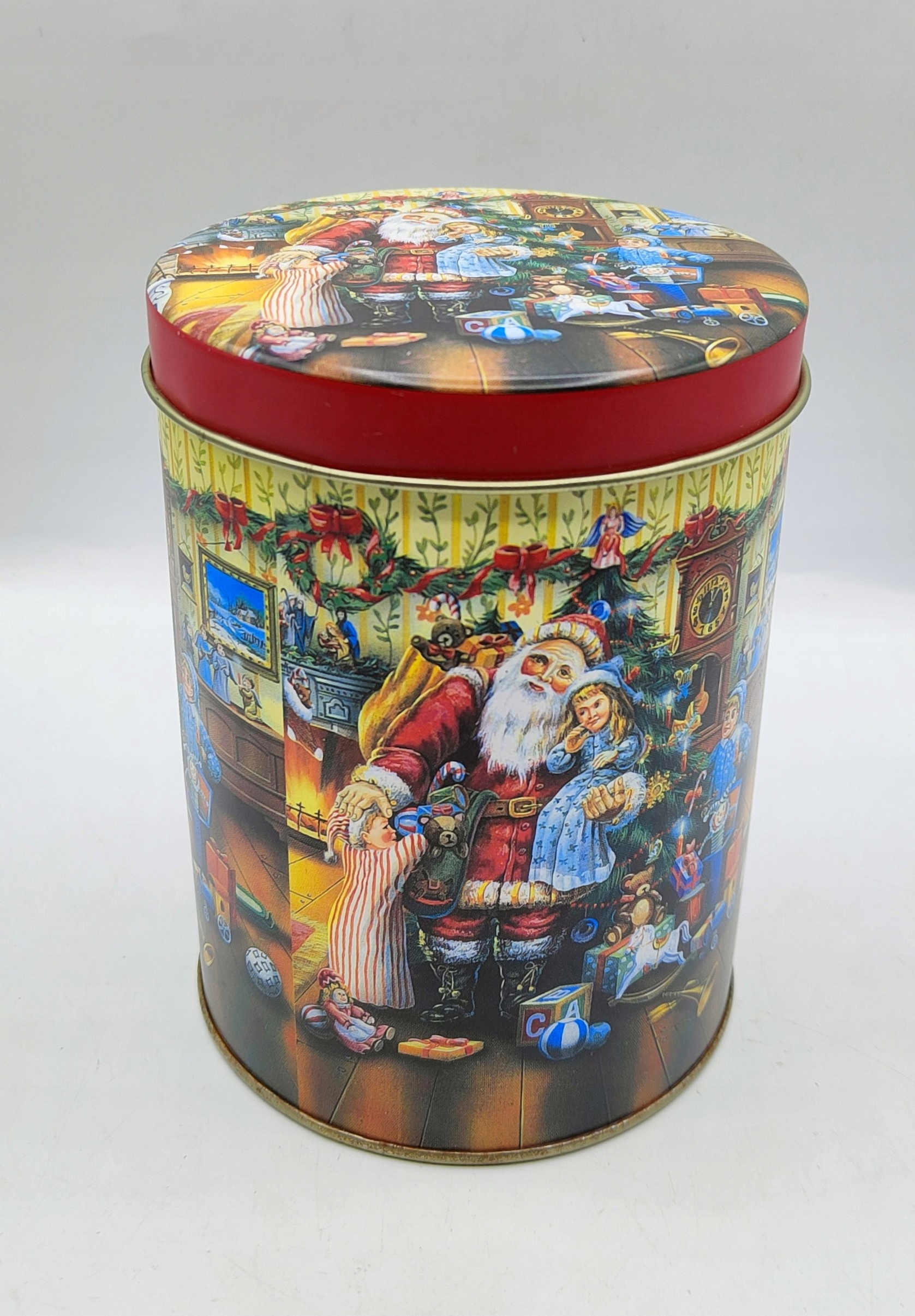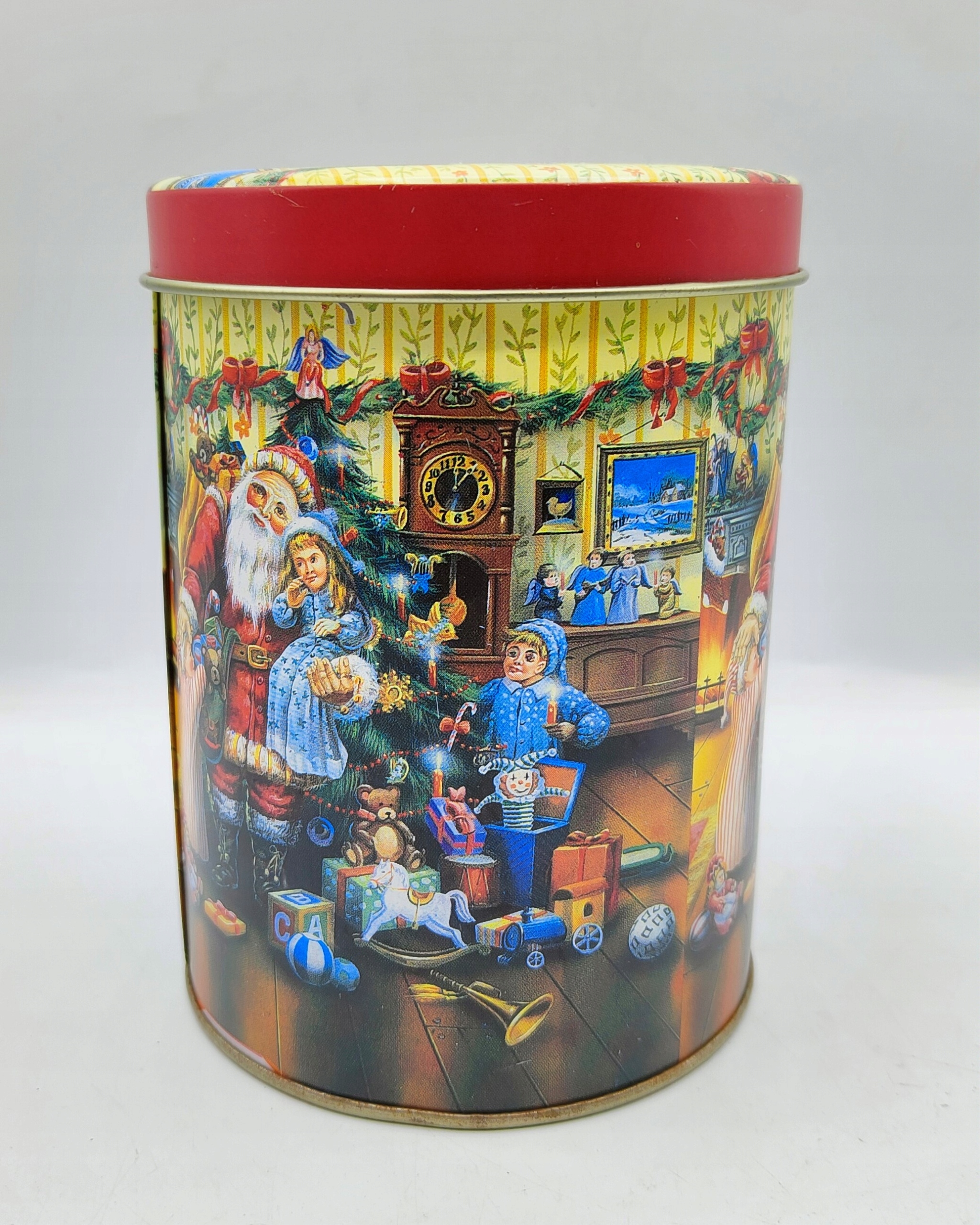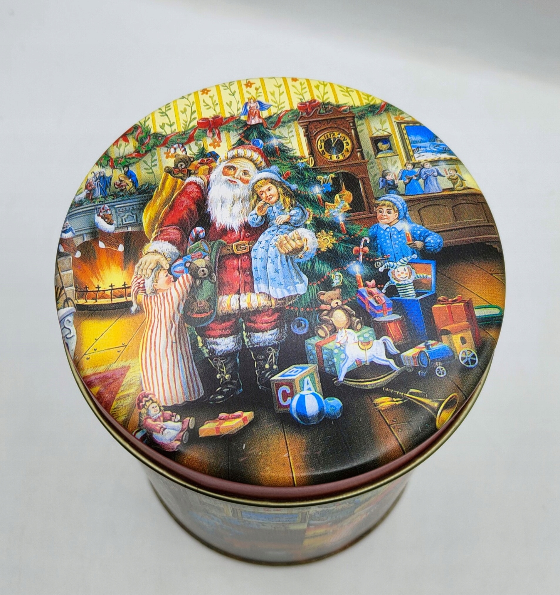 Металлическая банка на Рождество - Санта с детьми и подарками :)