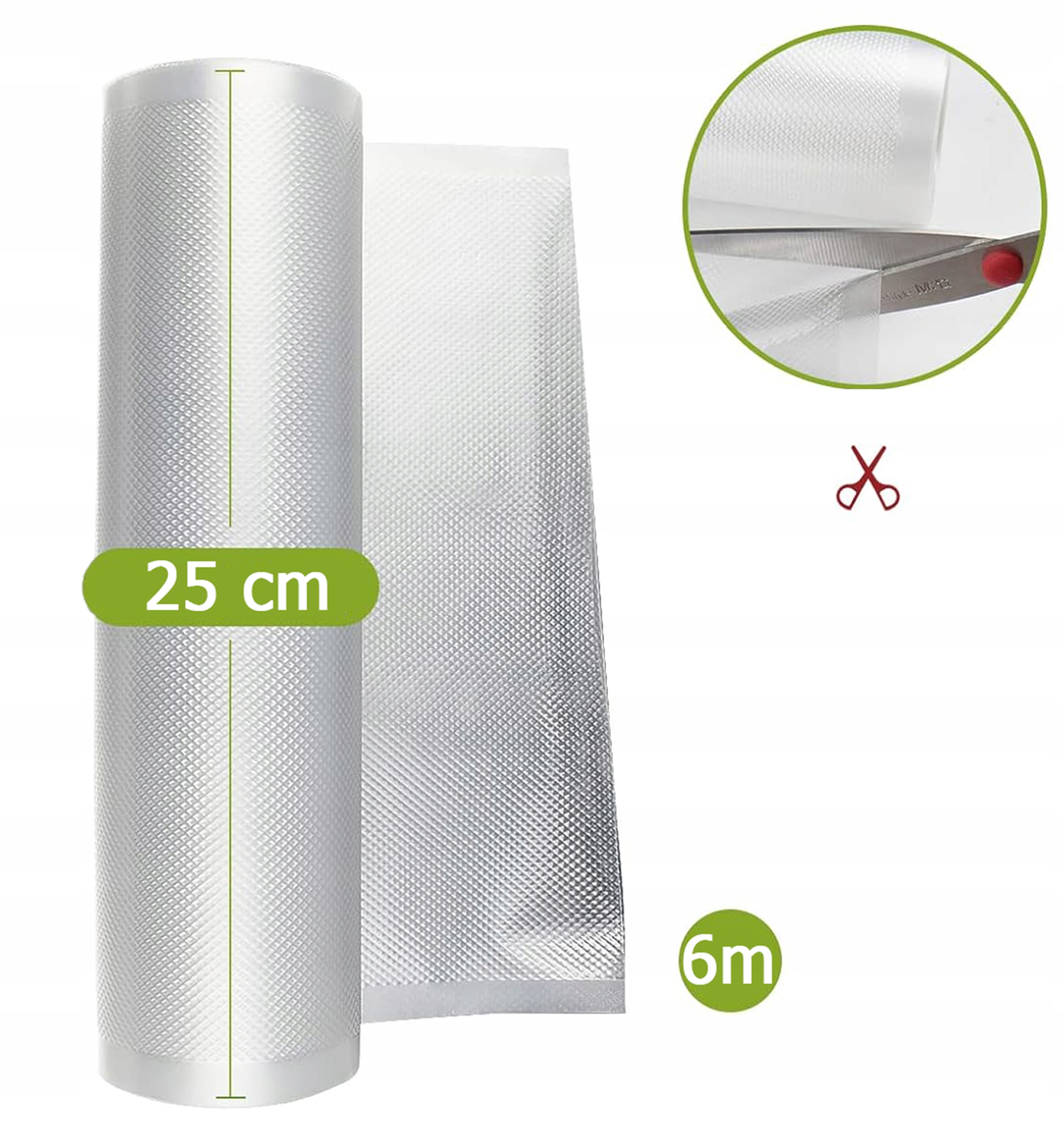Фольга имеет специально спроектированную, глубокую тиснения, которая позволяет быстрее и эффективнее воздуха 💨 . Благодаря современной производственной технологии и тщательно отобранным материалам вы получаете уверенность жесткие сварные швы 🔒 и отличную защиту хранимых продуктов 🥩🧀🐟.