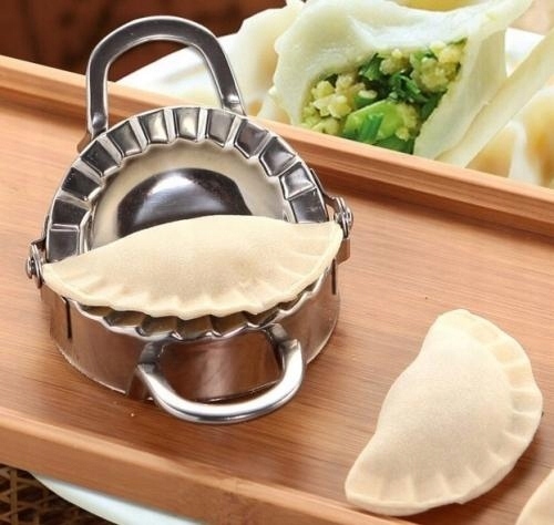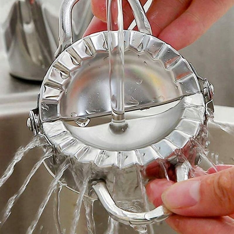 из нержавеющей стали с качеством пищи, безопасным, долговечным и очень твердым. Легко в использовании, просто положите тесто на внутреннюю поверхность, добавьте тесто, заполняющее в центр, а затем нажмите плесень (каким -то образом разбивая его пополам).