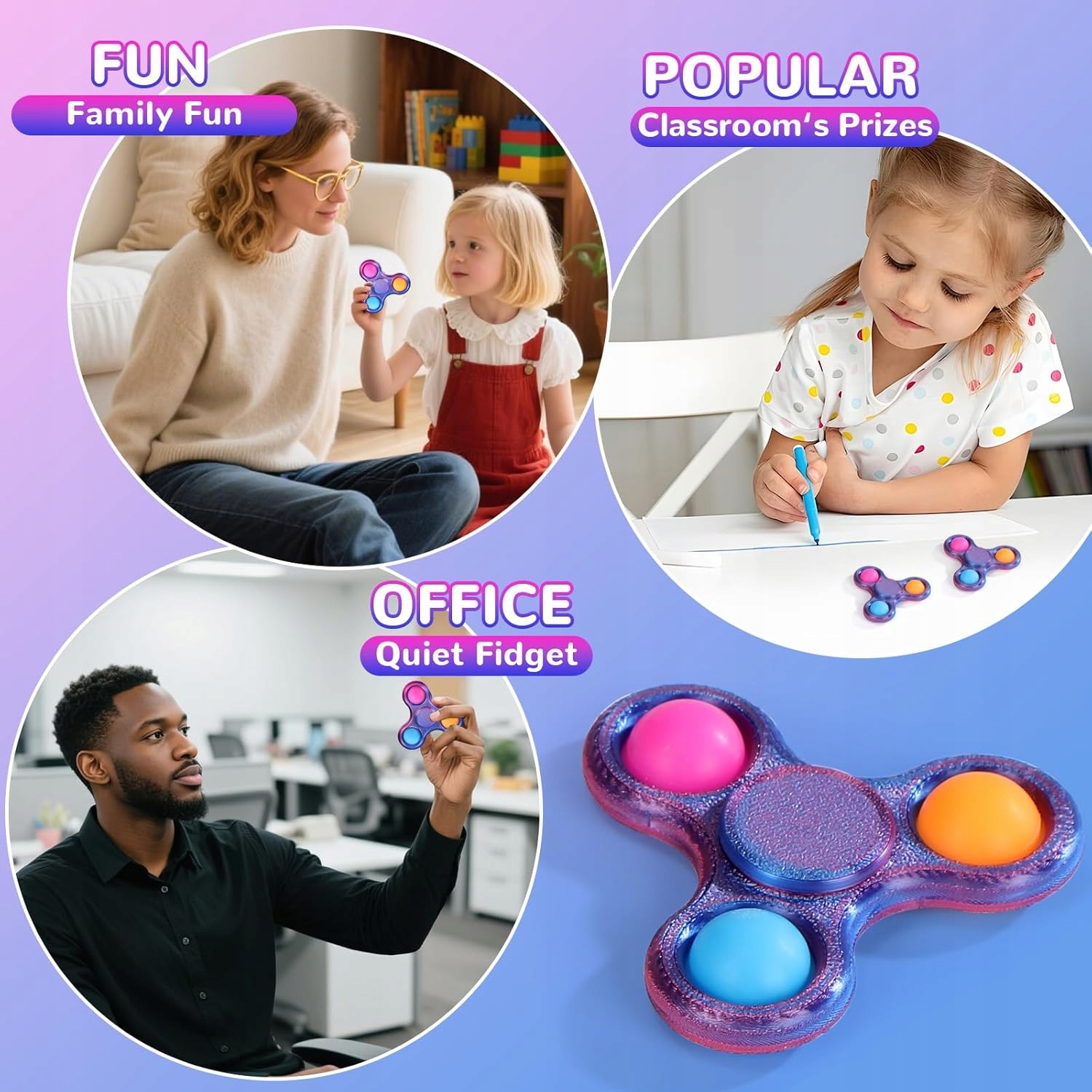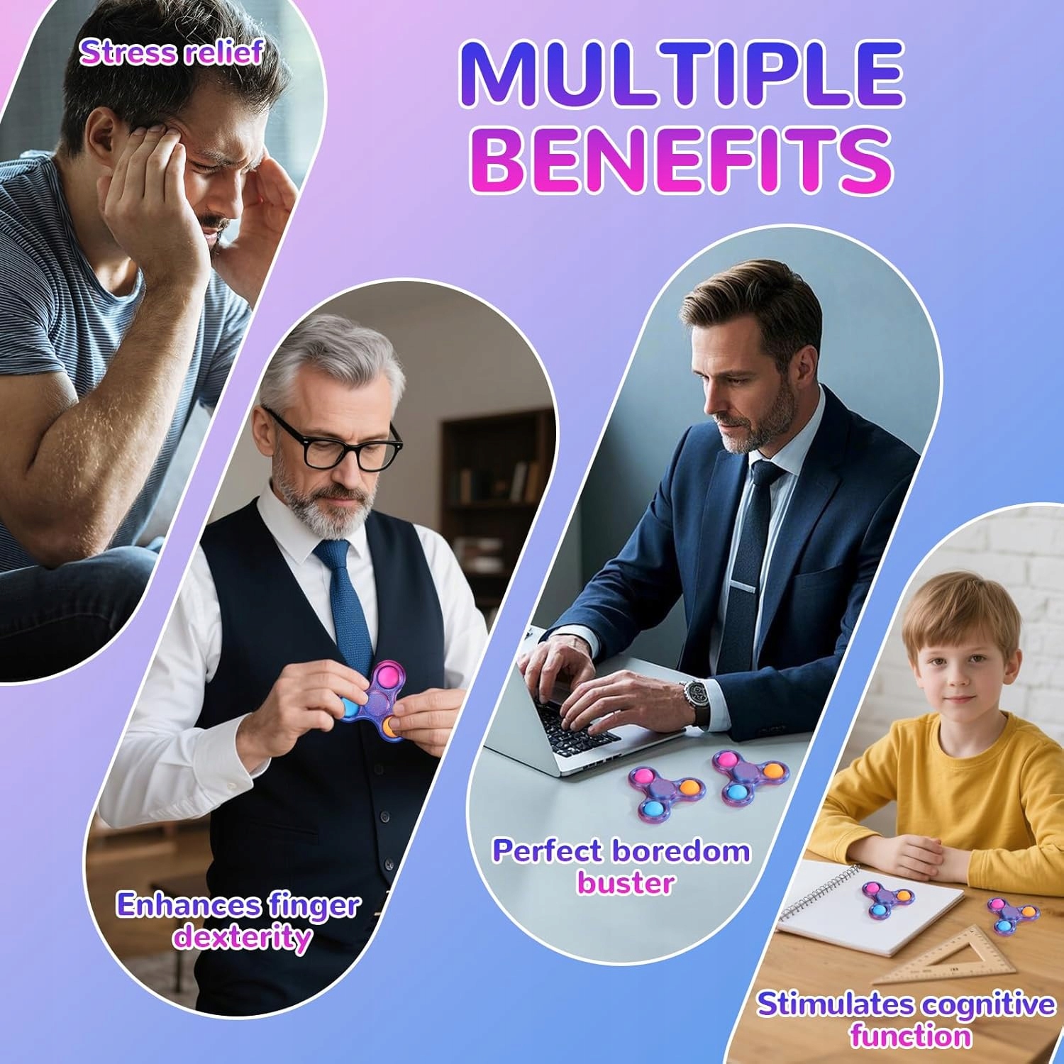 Спиннер поддерживает концентрацию и может облегчить людям с СДВГ или тревогой, помогая сконцентрироваться и успокоиться.