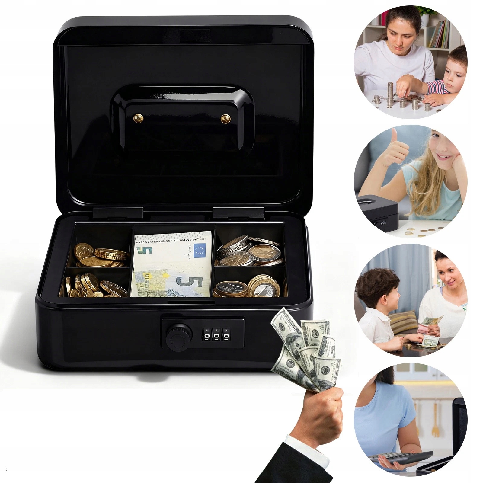 ✅ Универсальный дизайн - подходит для многих применений: для управления домашним бюджетом в качестве небольшого ящика с ключевым замком, для использования в офисе или в качестве переносной фискальной кассы.