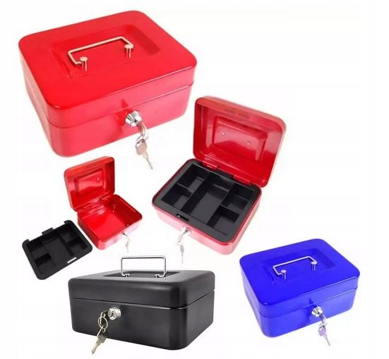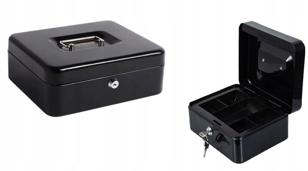 Прочный и практичный металлический ящик, идеально подходящий для хранения денег, ювелирных изделий, документов и других ценных вещей. Оснащен ключевым замком и пластиковой вставкой с отделениями, облегчающими разделение монет и купюр.