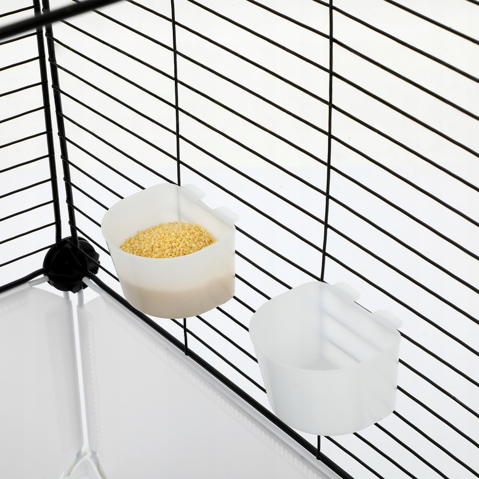 КормлениеВ комплект входят 2 пластиковые кормушки (для еды и воды), прикрепленные непосредственно к проволоке клетки. Наполняйте и чистите их, не открывая клетку полностью — больше не нужно бороться за доступ к мискам, сохраняя при этом вашу птицу в безопасности!