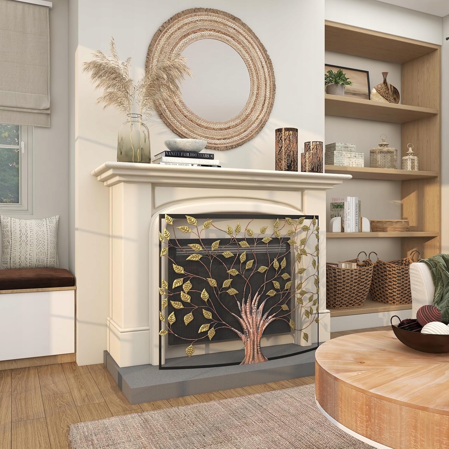 Deco 79 Metal cover h1> Fireplace with a tree motif,