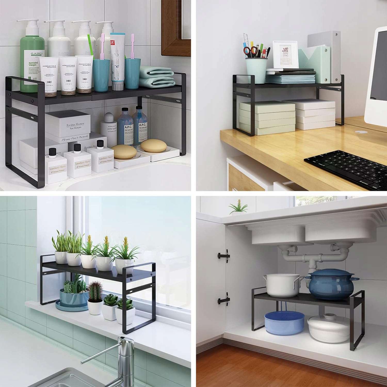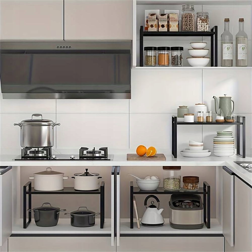 полка позволяет эффективно использовать пространство, создавая дополнительное место для хранения различных кухонных предметов, таких как специи, посуды, тарелки и чашки. p>