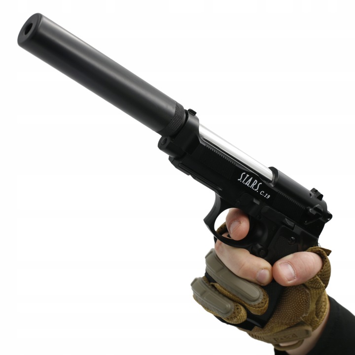Металлический шариковый пистолет 6 мм реплика Beretta C19+ ASG Slencer