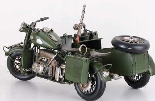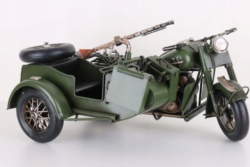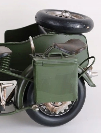Металева модель старовинного зеленого мотоцикла З КОШИКОМ